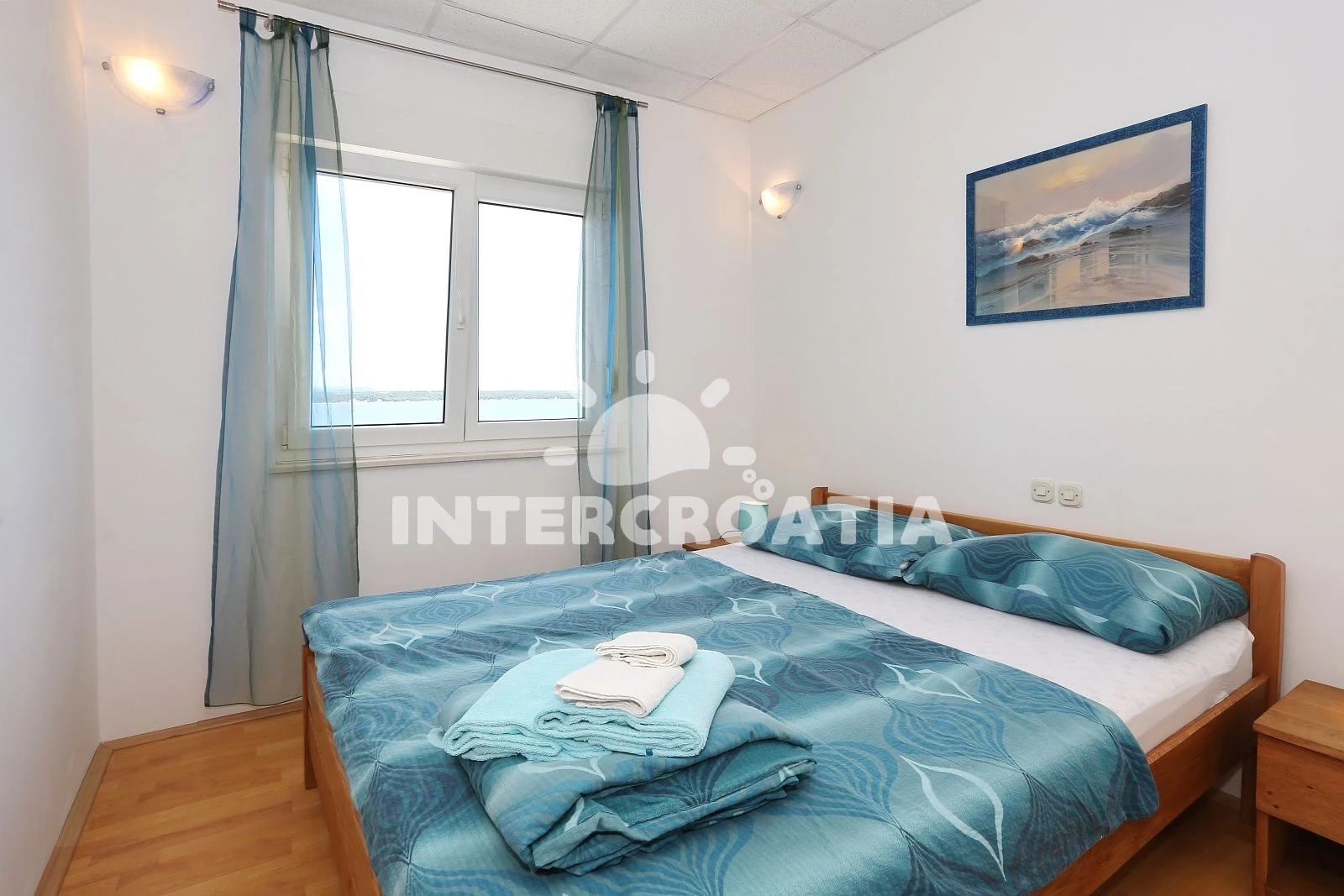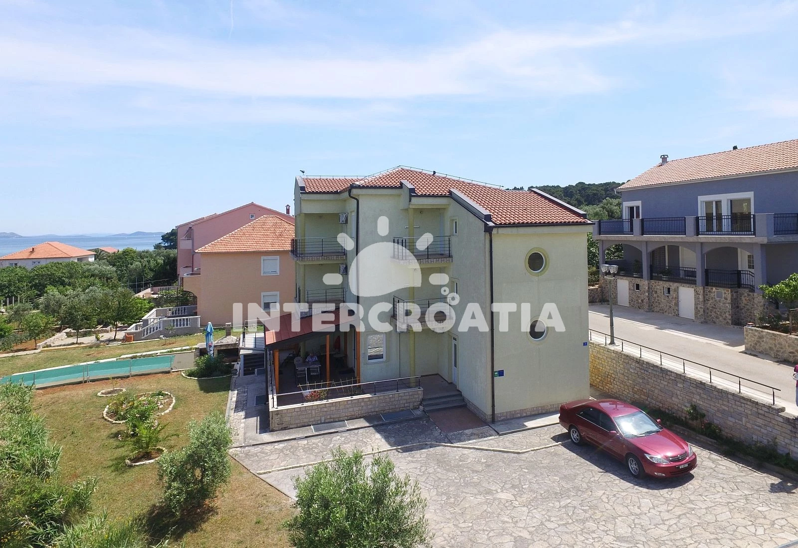 Vzdálenosti: Moře 20 m, pláž 20 m (písek), bar 150 m, restaurace 200 m, supermarket 300 m, směnárna 480 m, ambulance 500 m, pošta 500 m, lékárna 500 m, trajekt (Tkon) 500 m, centrum 500 m, park Plitvice 30 km, letiště (Zadar) 32 km,
