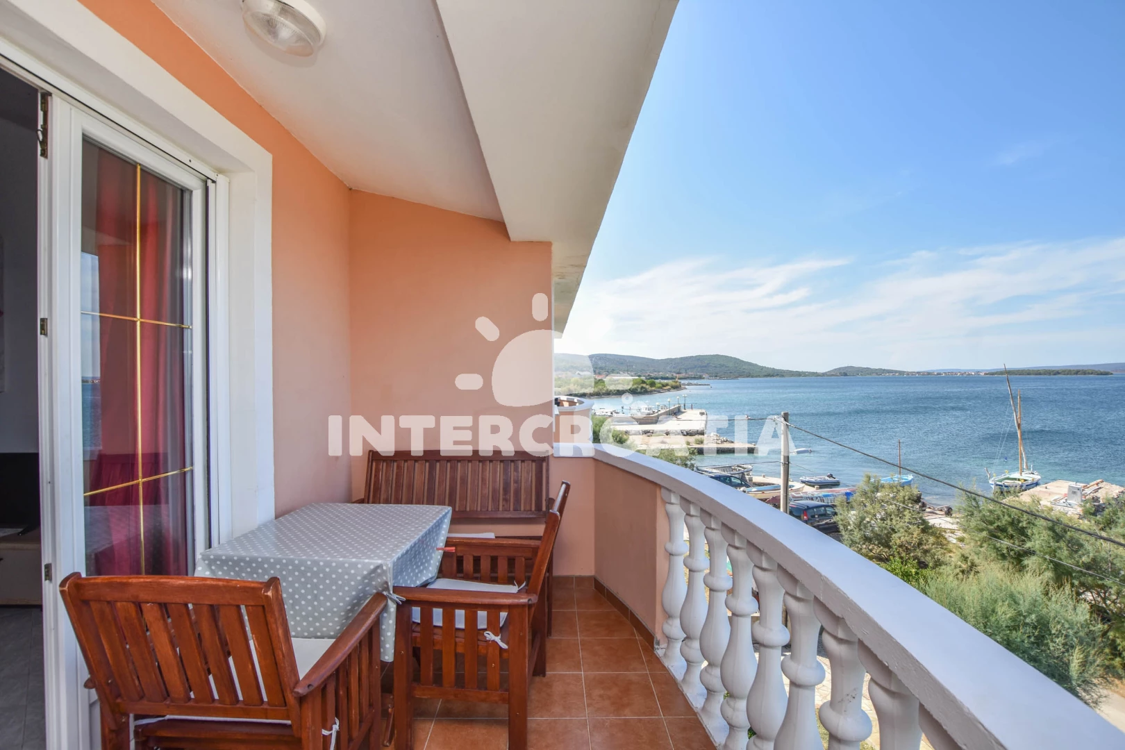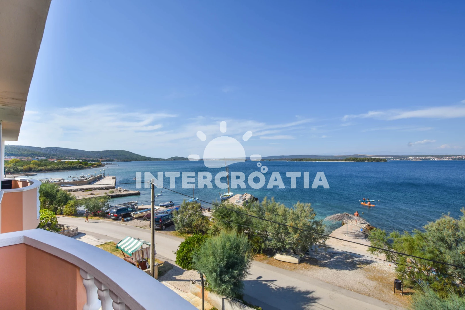 Vzdálenosti: Moře 10 m, pláž 20 m (písčitá a betonové desky), bar 50 m, restaurace 1,5 km, centrum 1,5 km, supermarket 1,5 km, veřejná doprava 1,5 km, trajekt (Tkon) 1,5 km, lékárna 1,5 km, čerpací stanice 3 km, letiště (Zadar) 28,8 km, park Plitvice 30 km,