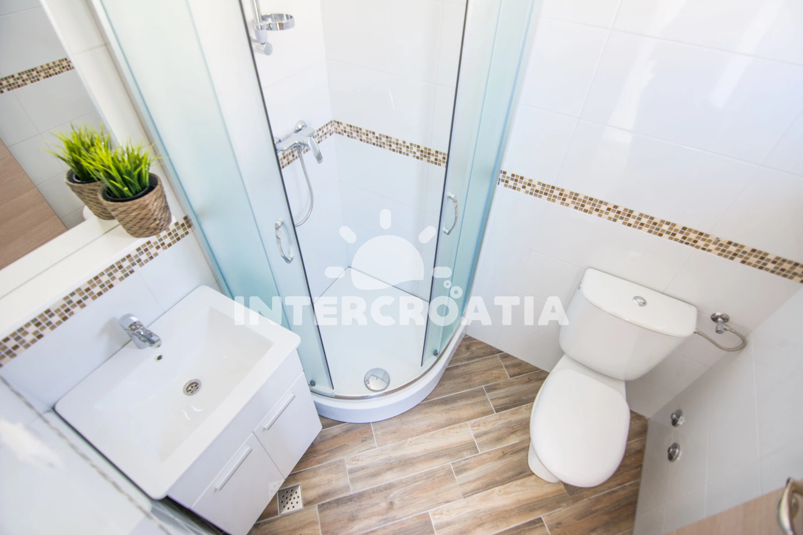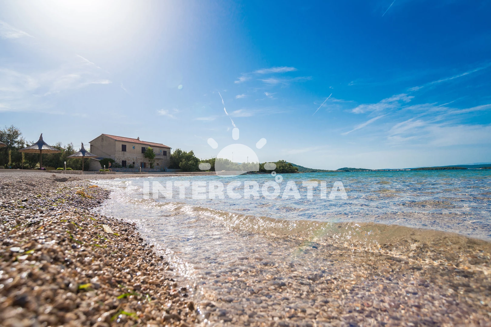 Vzdálenosti: Moře 90 m, pláž 100 m (písčitá a oblázková), bar 200 m, restaurace 600 m, ambulance 2 km, trajekt (Tkon) 2 km, supermarket 2 km, lékárna 2 km, směnárna 2 km, pošta 2 km, centrum 2 km, park Plitvice 30 km, letiště (Zadar) 40 km,