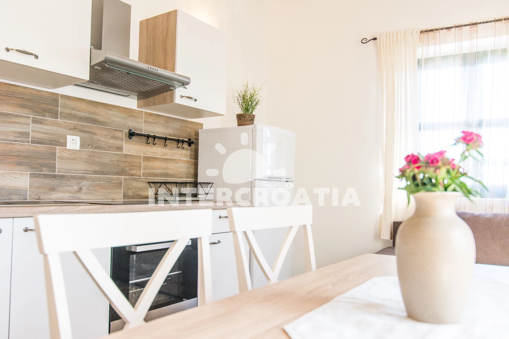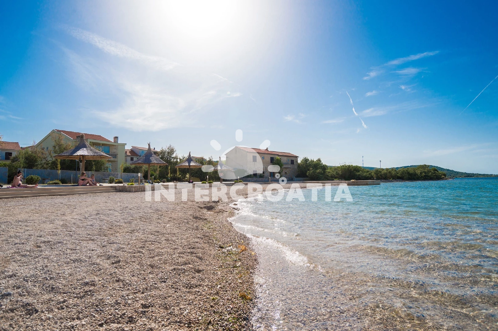 Vzdálenosti: Moře 90 m, pláž 100 m (písčitá a oblázková), bar 200 m, restaurace 600 m, ambulance 2 km, trajekt (Tkon) 2 km, supermarket 2 km, lékárna 2 km, směnárna 2 km, pošta 2 km, centrum 2 km, park Plitvice 30 km, letiště (Zadar) 40 km,