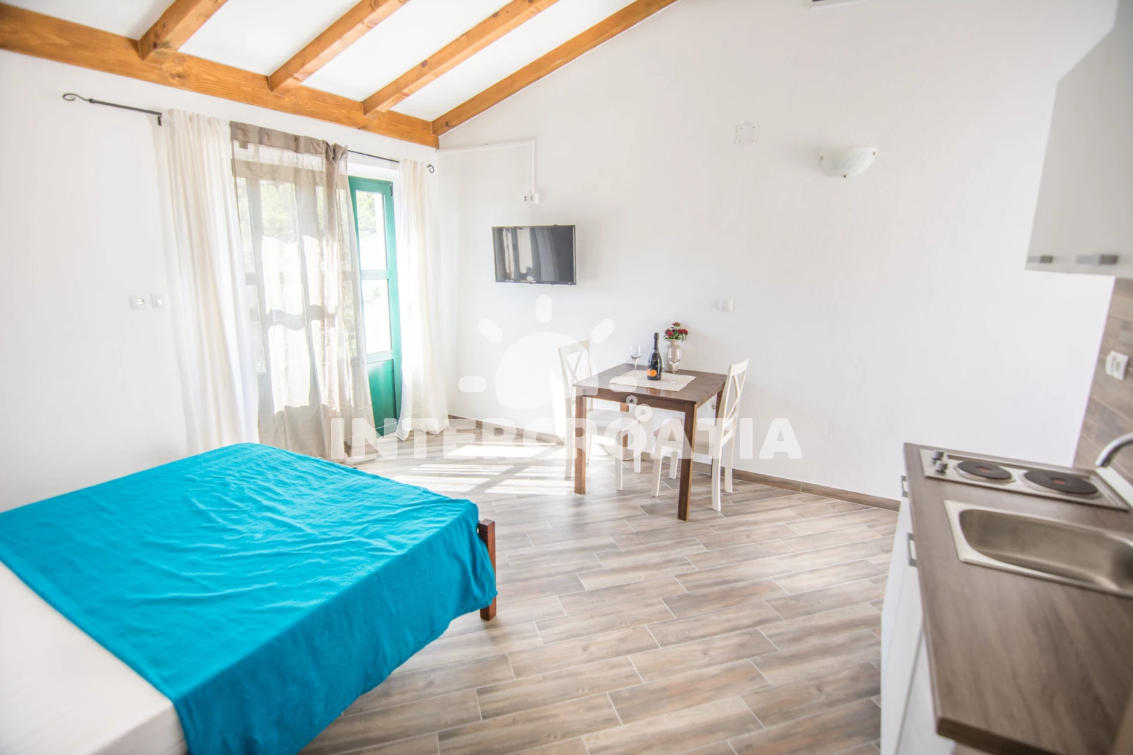 Apartmán typu studio (25 m2). Nachází se v 1. patře objektu. Kuchyňská linka je vybavena varnou deskou, mikrovlnnou troubou, rychlovarnou konvicí, nádobím, mini lednicí. K dispozici dvoulůžko,…