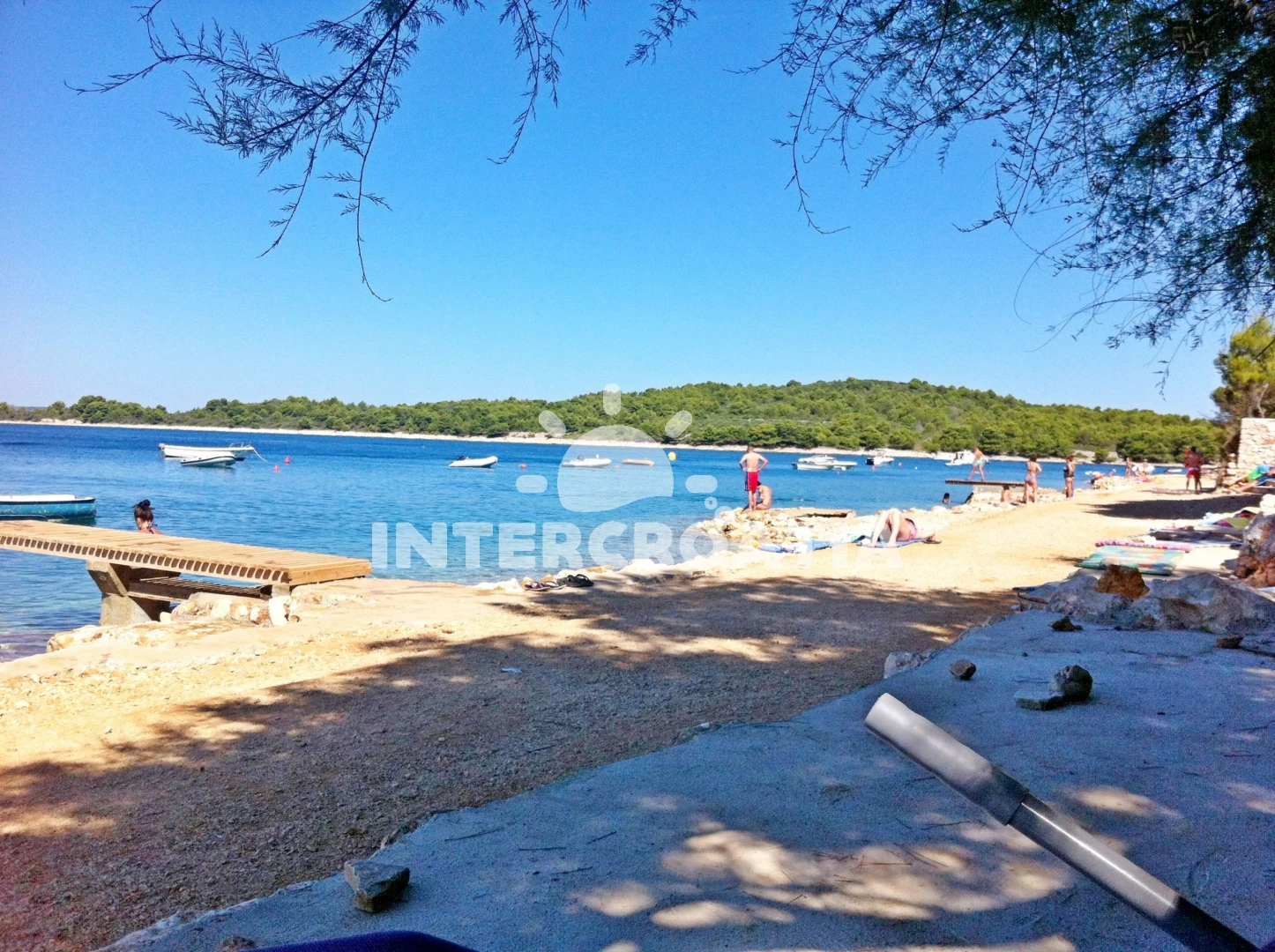 Vzdálenosti: Moře 80 m, pláž 80 m (písčitá, skalnatá, oblázková, větší kamení a betonové desky), supermarket 300 m, veřejná doprava 300 m, bar 300 m, restaurace 400 m, pošta 1,5 km, centrum 2 km, lékárna 4 km, ambulance 4 km, směnárna 4 km, banka 4 km, diskotéka 4 km, trajekt (Preko) 10 km, čerpací stanice 10 km,