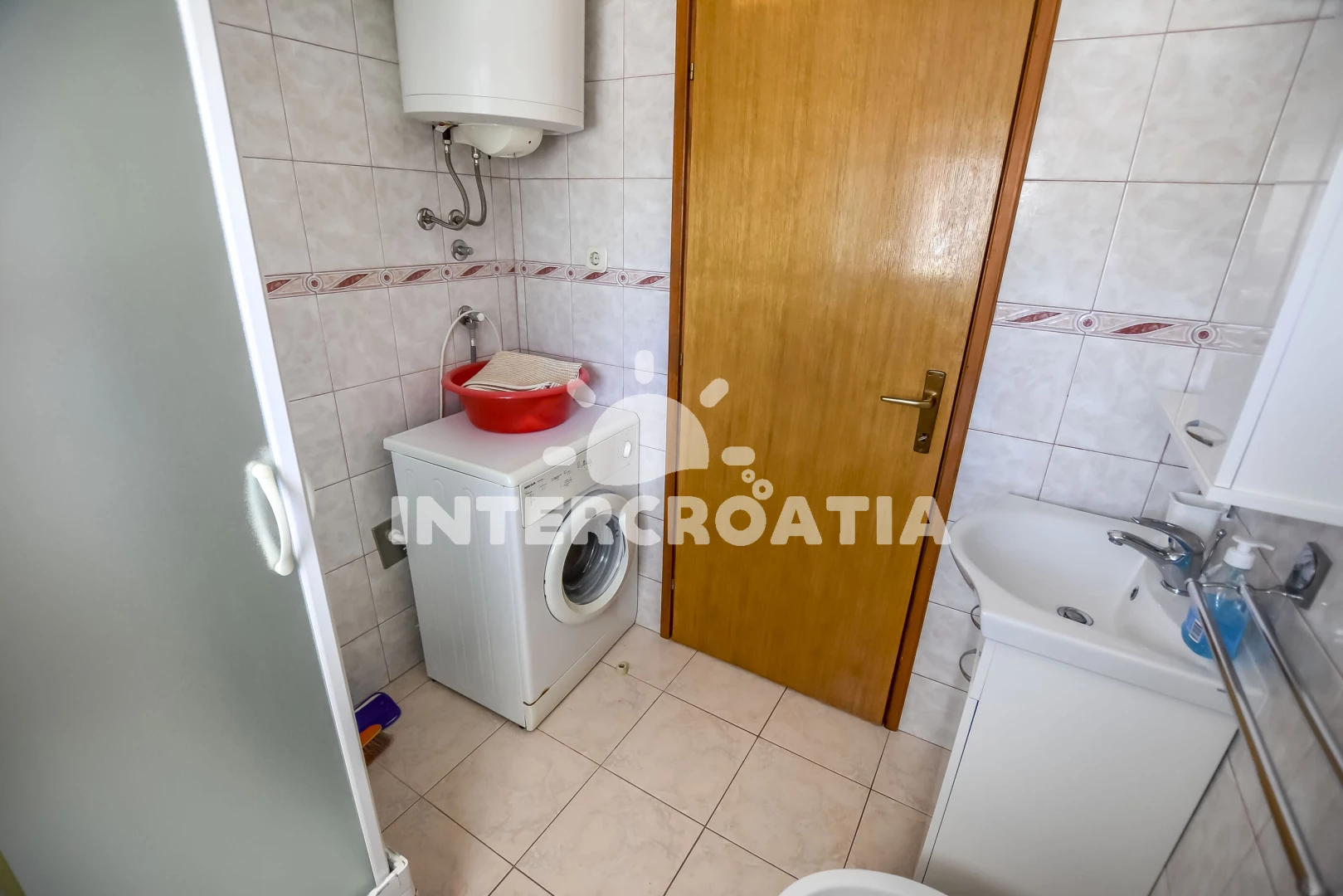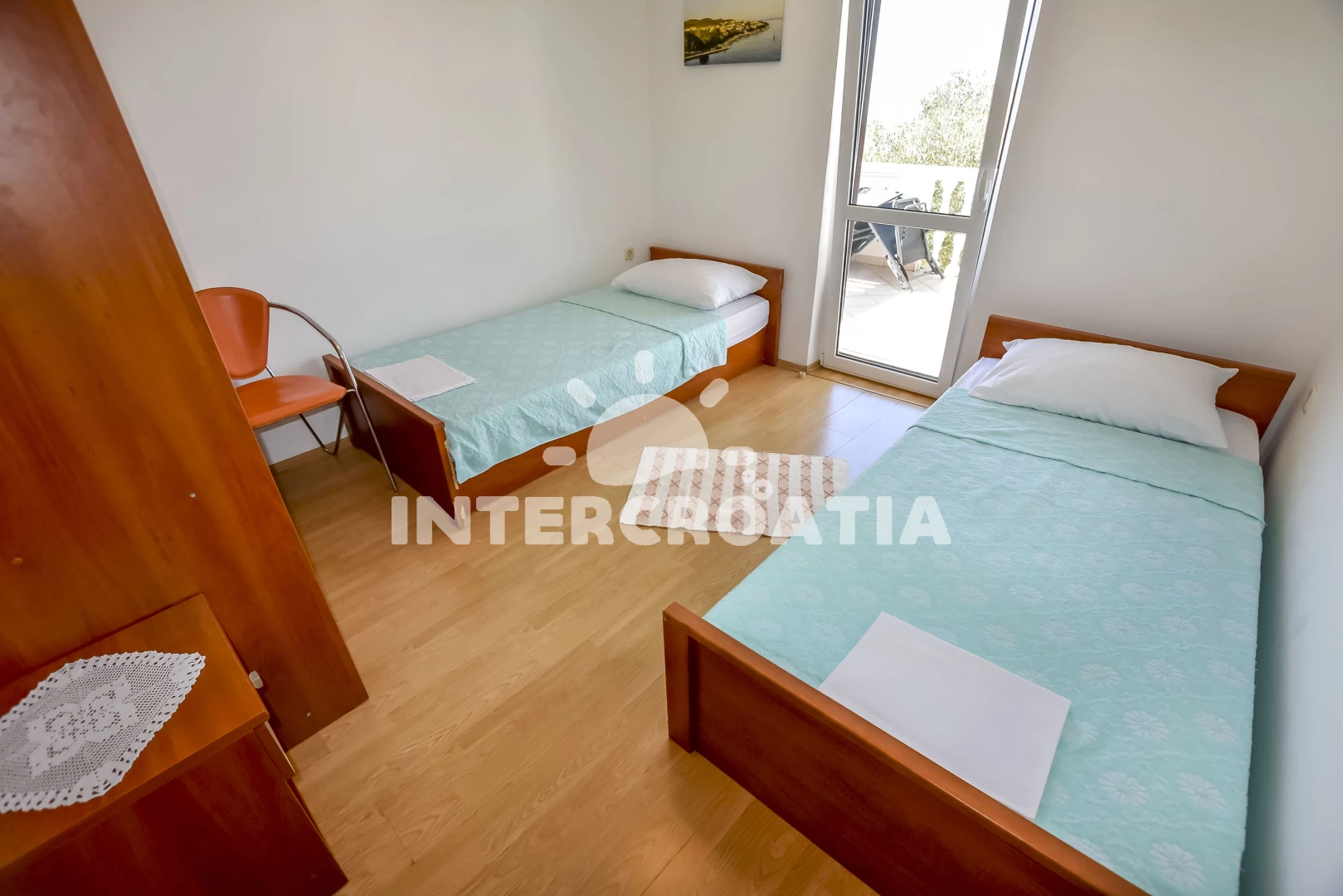 Apartmán se nachází 80 m od moře a pláže. Pláž je písčitá, skalnatá, oblázková, větší kamení a betonové desky. U objektu je k dispozici společná zahrada s posezením a grilem. Parkování je před domem.