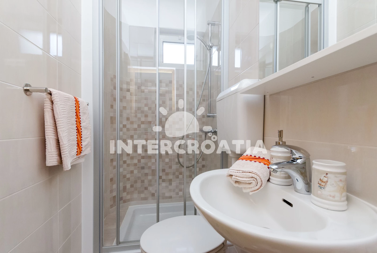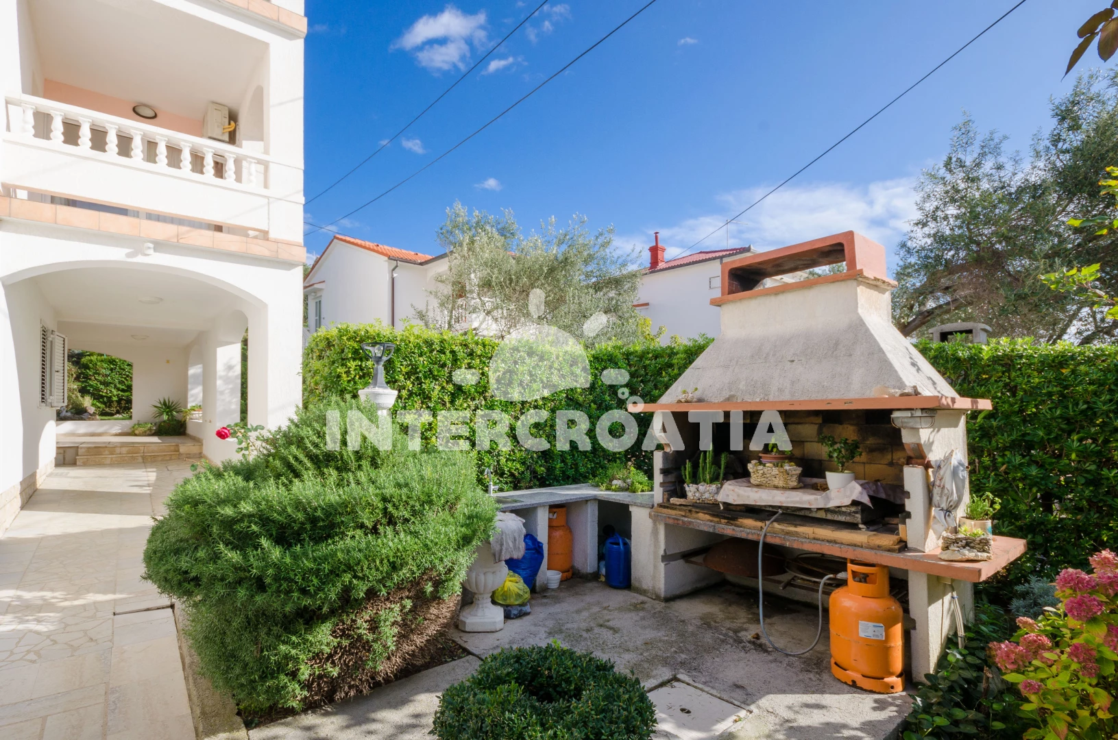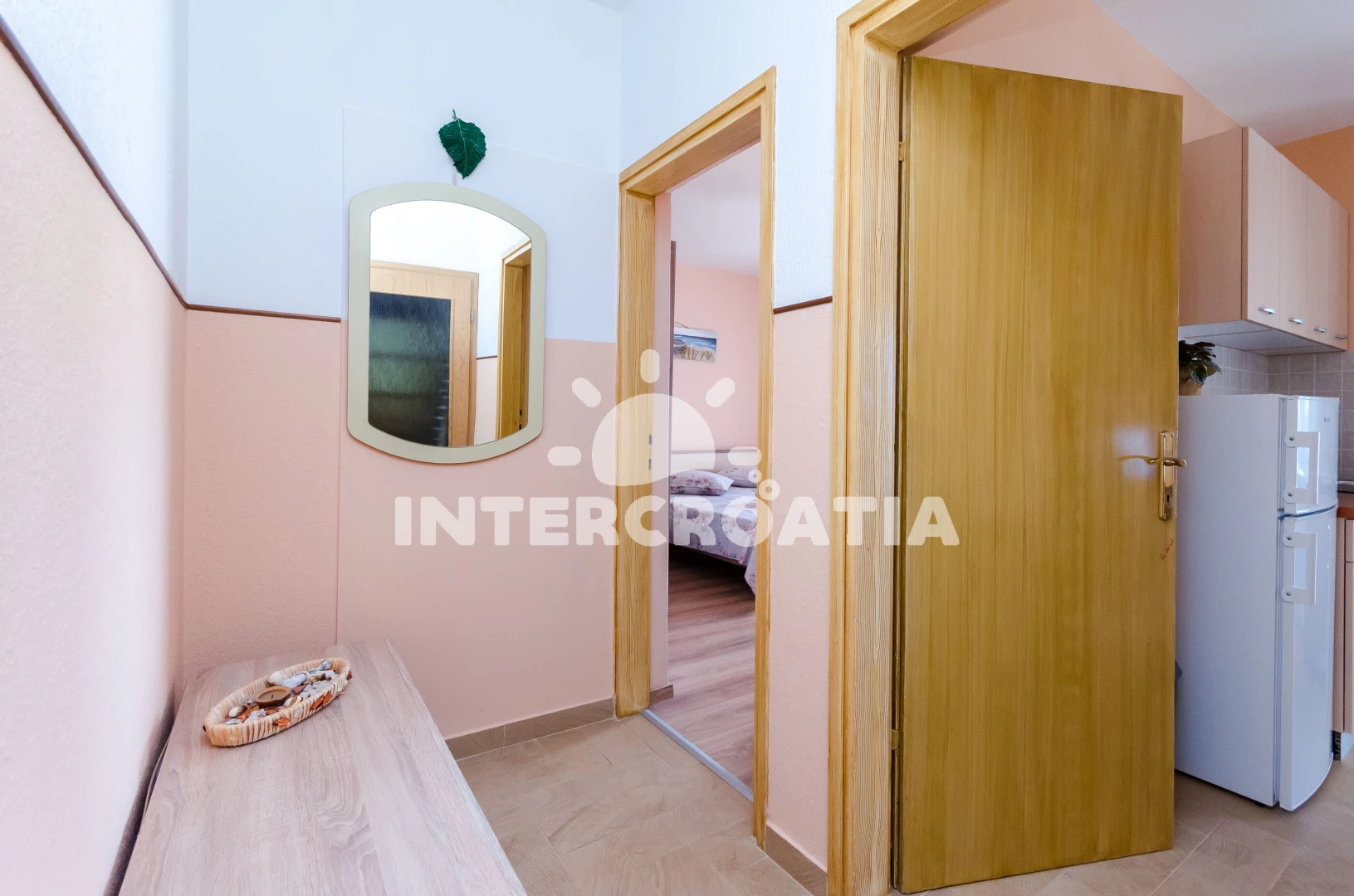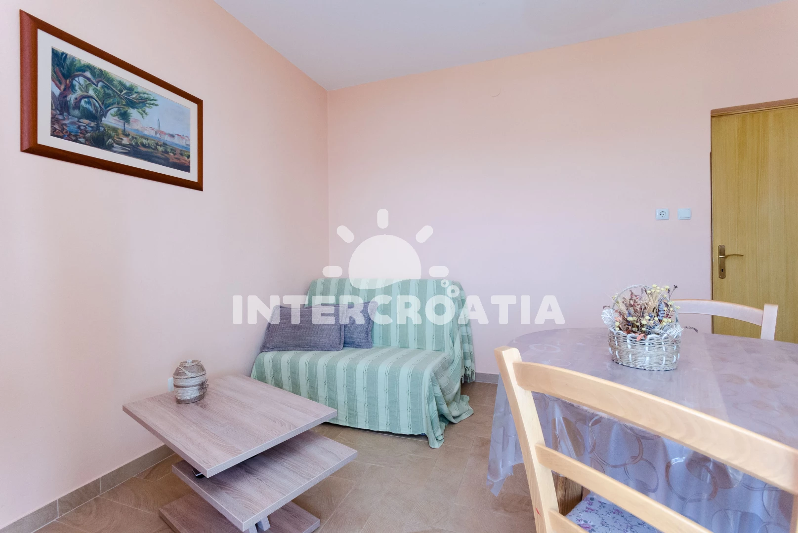 Vzdálenosti: Moře 50 m, pláž 50 m (písčitá a betonové desky), kotviště pro čluny 100 m, supermarket 100 m, půjčovna kol 100 m, restaurace 150 m, bar 150 m, veřejná doprava 200 m, čerpací stanice 500 m, směnárna 500 m, tenisové kurty 800 m, ambulance 2 km, diskotéka 2 km, pošta 2 km, centrum 2 km, lékárna 2 km, muzeum 2 km, banka 2 km, trajekt (Misnjak) 8 km,