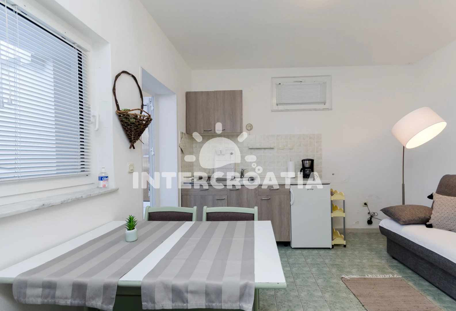 Vzdálenosti: kotviště pro čluny 0 m, Moře 50 m, pláž 100 m (písčitá a betonové desky), restaurace 50 m, bar 50 m, směnárna 50 m, půjčovna kol 100 m, půjčovna motorových člunů 100 m, supermarket 100 m, pošta 700 m, banka 700 m, centrum 700 m, lékárna 800 m, veřejná doprava 800 m, muzeum 800 m, diskotéka 900 m, čerpací stanice 1 km, tenisové kurty 1 km, mini golf 1 km, marina 1 km, ambulance 1 km, potápění 6 km, trajekt (Misnjak) 12 km,