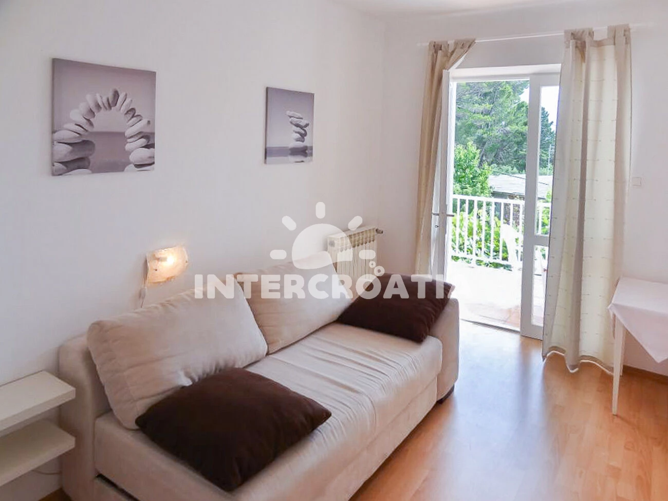 Vzdálenosti: Moře 50 m, pláž 70 m (písčitá a betonové desky), bar 100 m, supermarket 100 m, restaurace 100 m, směnárna 100 m, půjčovna motorových člunů 500 m, půjčovna kol 500 m, čerpací stanice 600 m, centrum 800 m, pošta 800 m, banka 800 m, ambulance 800 m, lékárna 800 m, veřejná doprava 800 m, trajekt (Misnjak) 12 km, letiště (Rijeka) 70 km,