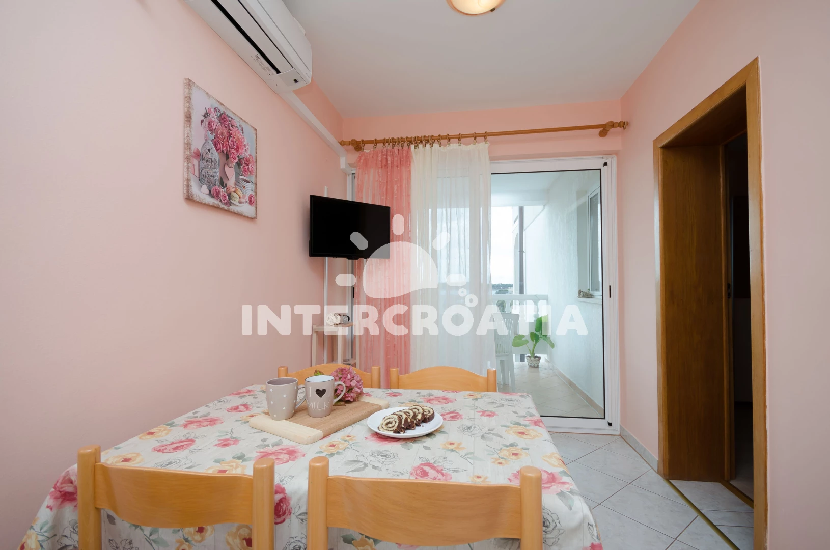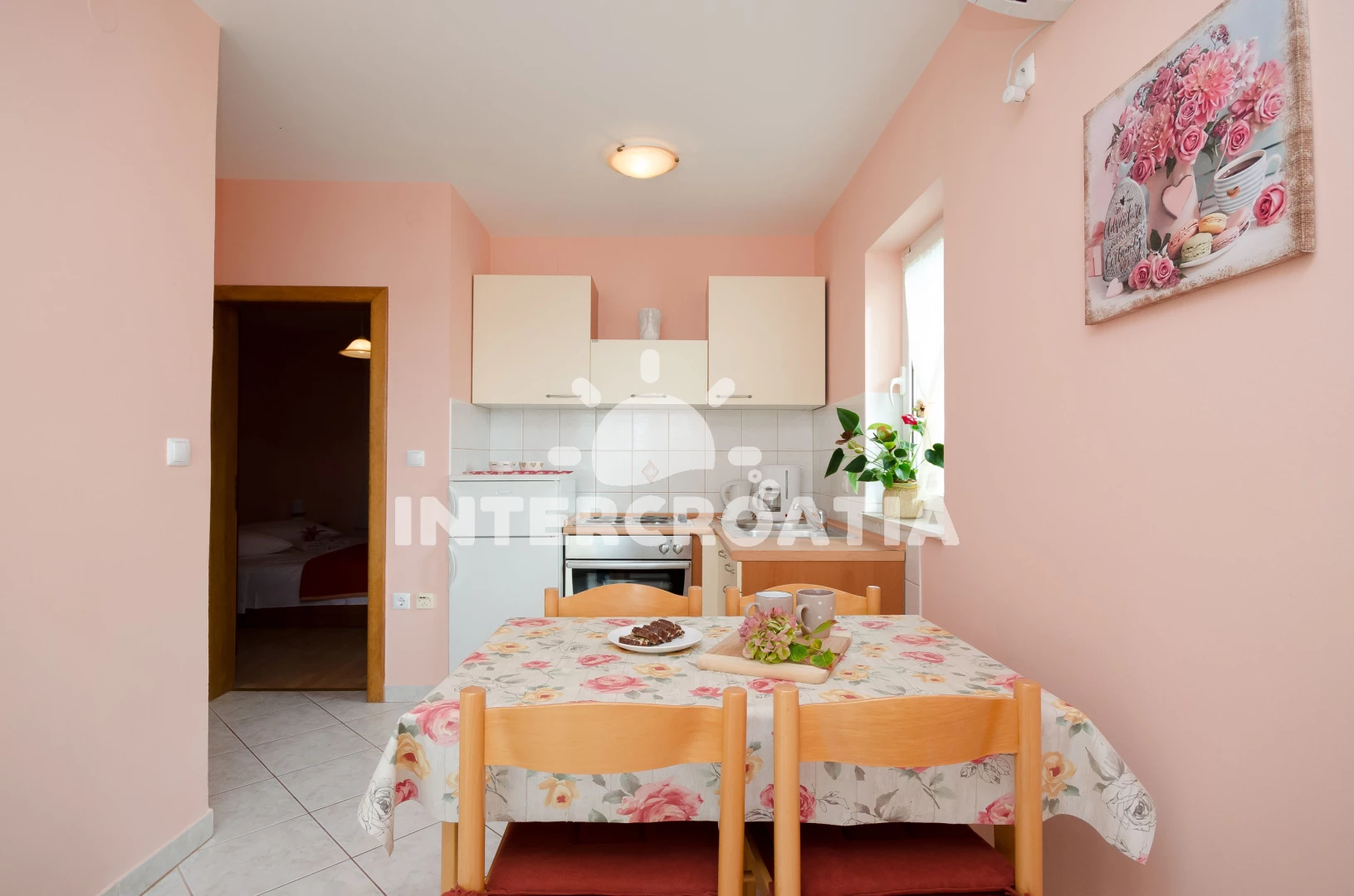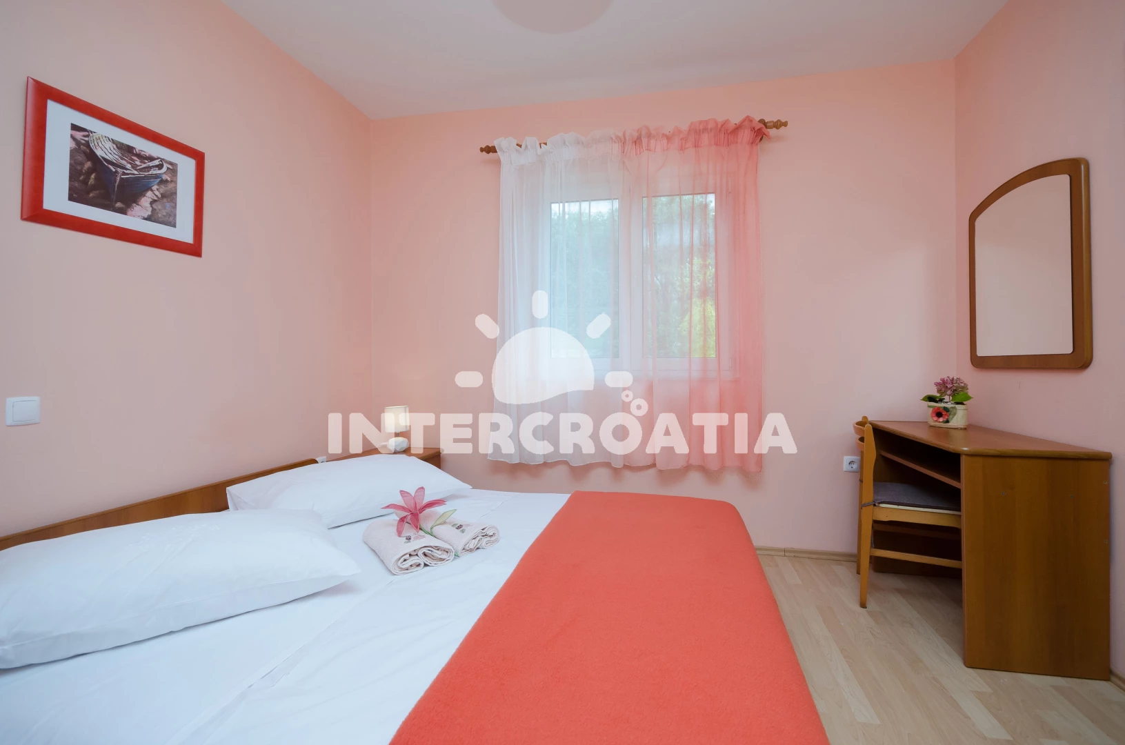 Apartmán (55 m2) s terasou, a výhledem na moře. Nachází se v 1. patře objektu. Apartmán má 2 ložnice a je vhodný pro až 4 osoby. Kuchyňská linka je vybavena varnou deskou, troubou, kávovarem,…