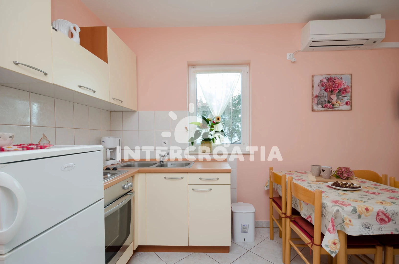 Vzdálenosti: Moře 50 m, pláž 50 m (písčitá a betonové desky), kotviště pro čluny 100 m, supermarket 100 m, půjčovna kol 100 m, restaurace 150 m, bar 150 m, veřejná doprava 200 m, čerpací stanice 500 m, směnárna 500 m, tenisové kurty 800 m, ambulance 2 km, diskotéka 2 km, pošta 2 km, centrum 2 km, lékárna 2 km, muzeum 2 km, banka 2 km, trajekt (Misnjak) 8 km,