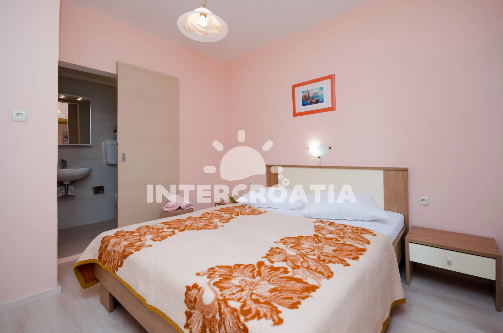 Apartmán (55 m2) s terasou, a výhledem na moře. Nachází se v 1. patře objektu. Apartmán má 2 ložnice a je vhodný pro až 4 osoby. Kuchyňská linka je vybavena varnou deskou, troubou, kávovarem, rychlovarnou konvicí, nádobím, lednicí, mrazákem. K dispozici televize se satelitním programem, žehlička. První ložnice s dvoulůžkem. Druhá ložnice s dvoulůžkem. První koupelna se sprchovým koutem, umyvadlem, fénem a WC. Druhá koupelna se sprchovým koutem, umyvadlem, fénem a WC.