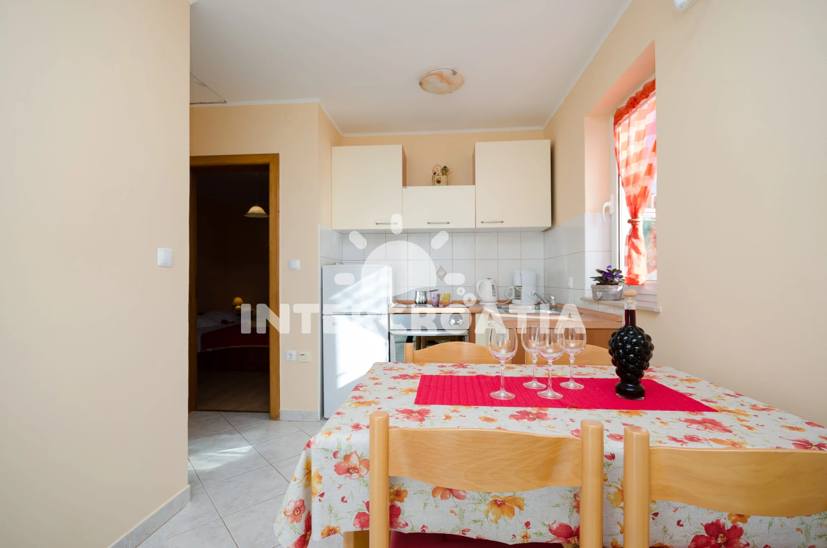 Vzdálenosti: Moře 50 m, pláž 50 m (písčitá a betonové desky), kotviště pro čluny 100 m, supermarket 100 m, půjčovna kol 100 m, restaurace 150 m, bar 150 m, veřejná doprava 200 m, čerpací stanice 500 m, směnárna 500 m, tenisové kurty 800 m, ambulance 2 km, diskotéka 2 km, pošta 2 km, centrum 2 km, lékárna 2 km, muzeum 2 km, banka 2 km, trajekt (Misnjak) 8 km,