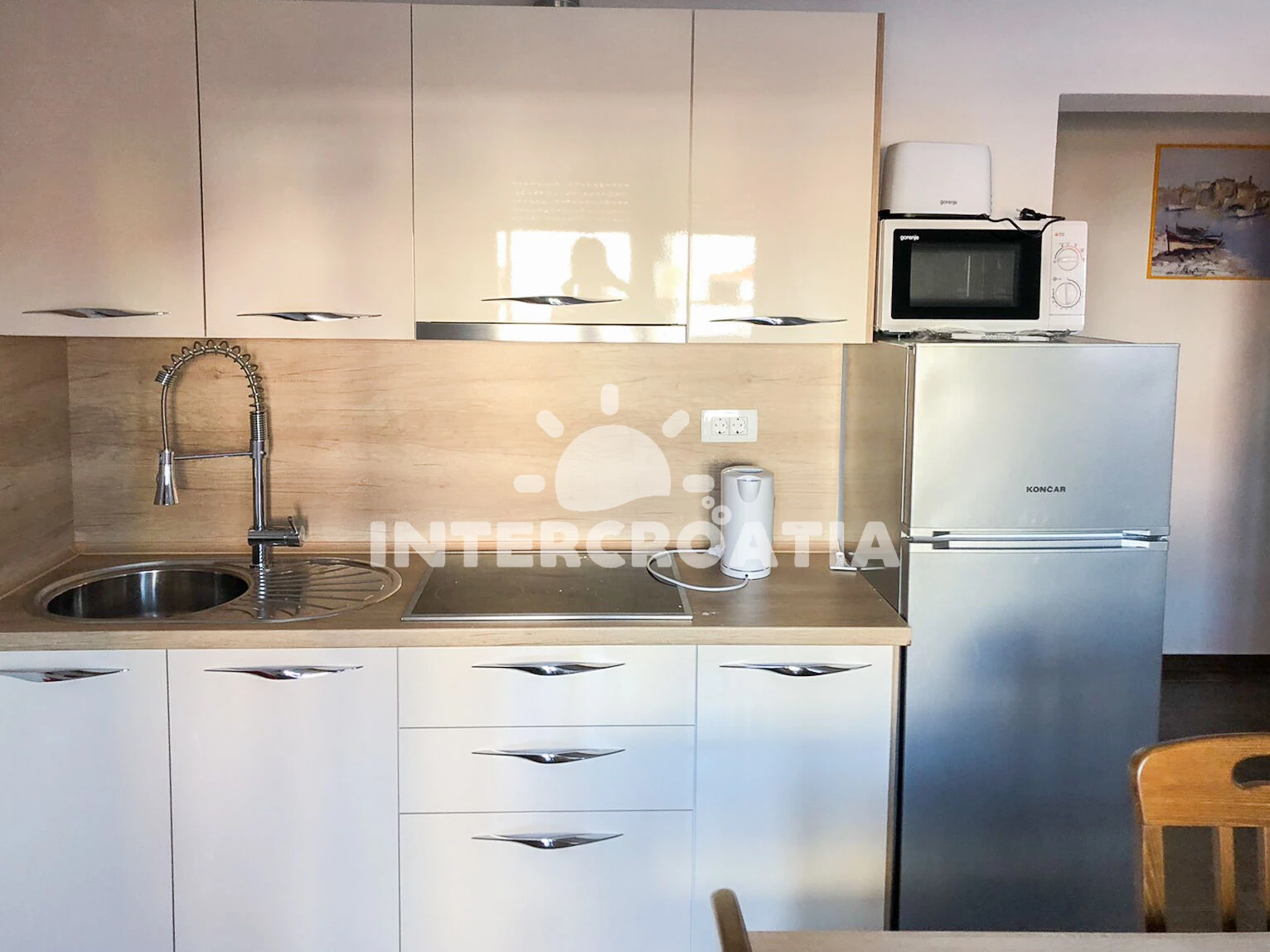 Vzdálenosti: Moře 350 m, pláž 400 m (oblázková a betonové desky), čerpací stanice 150 m, bar 150 m, restaurace 200 m, centrum 300 m, směnárna 350 m, půjčovna kol 400 m, půjčovna motorových člunů 400 m, supermarket 500 m, potápění 500 m, mini golf 2,3 km, tenisové kurty 2,3 km, lékárna 3 km, diskotéka 3 km, pošta 3 km, muzeum 3 km, ambulance 3 km, banka 3 km, trajekt (Misnjak) 10 km,