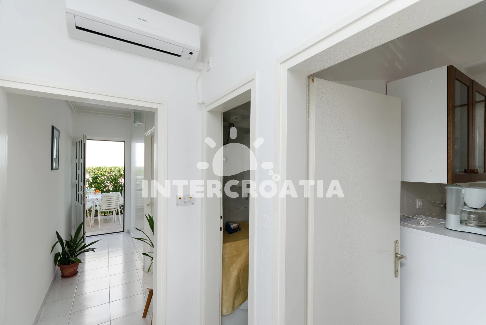 Apartmán se nachází 150 m od moře a pláže. Pláž je písčitá a oblázková. Parkování je před domem.