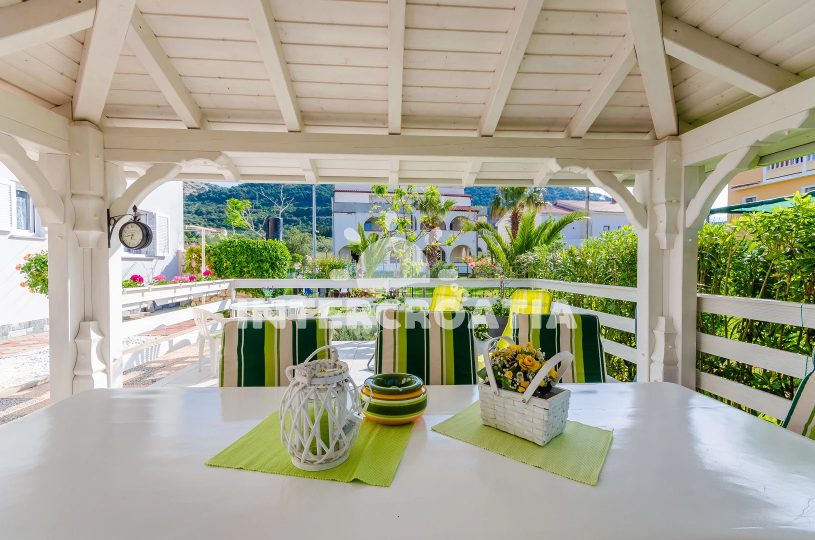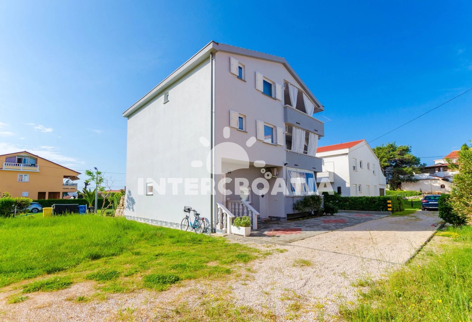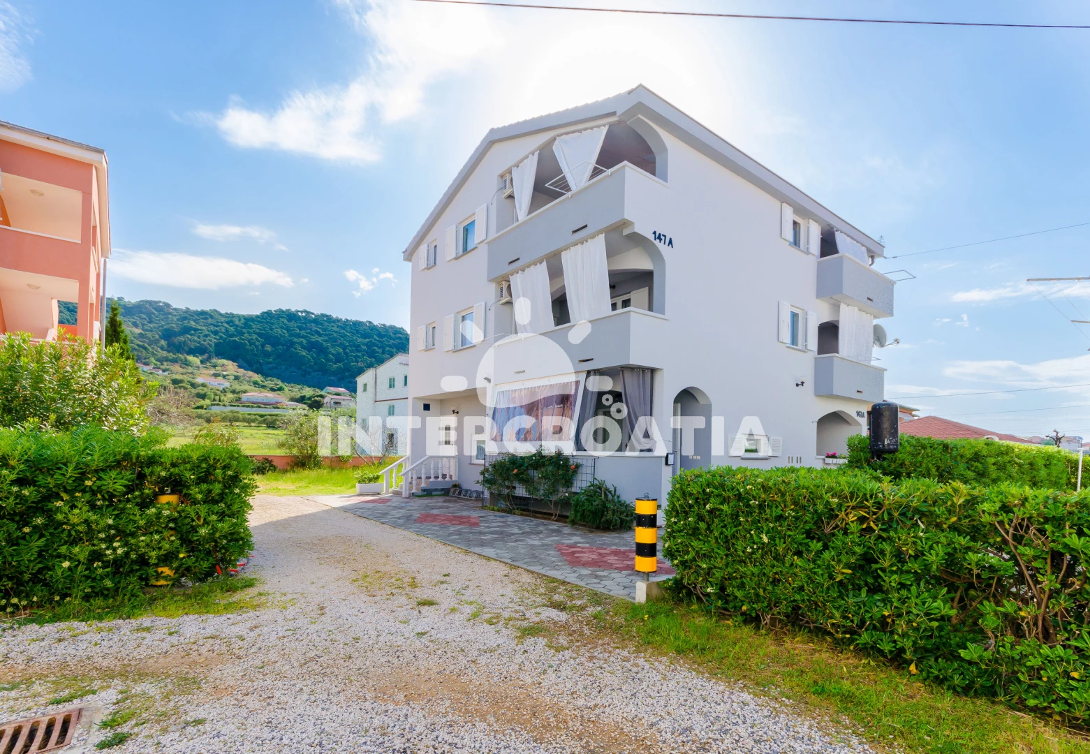 Apartmán se nachází 200 m od moře a pláže. Pláž je písčitá a oblázková. Apartmán disponuje bazénem s lehátky pro ubytované hosty. U objektu je k dispozici společná zahrada s posezením a grilem.