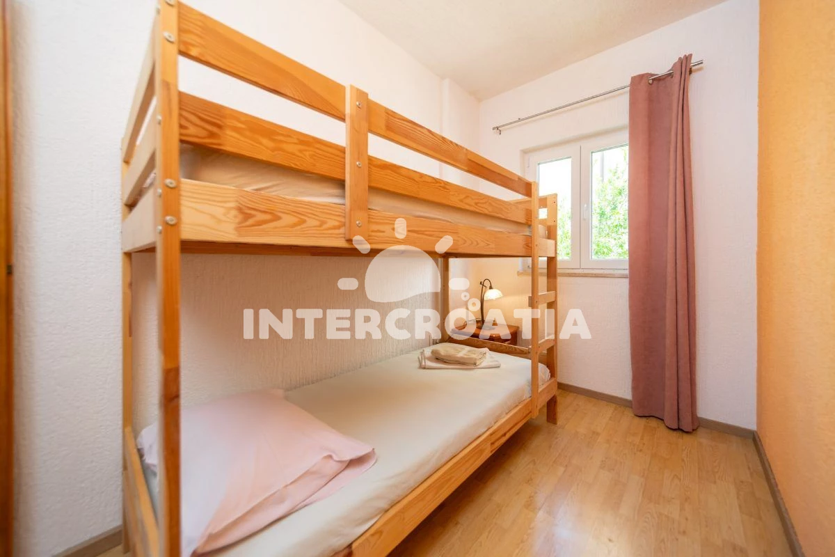 Vzdálenosti: Moře 30 m, pláž 50 m (oblázky), bar 30 m, restaurace 100 m, veřejná doprava 200 m, směnárna 200 m, supermarket 300 m, čerpací stanice 2 km, diskotéka 5 km, lékárna 5 km, ambulance 5 km, tenisové kurty 5 km, banka 5 km, pošta 5 km, centrum 6 km, marina 6 km, letiště 80 km, trajekt (Rijeka) 110 km,
