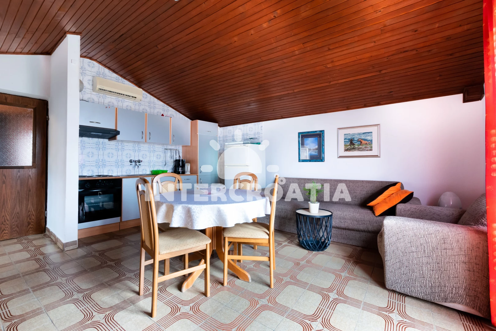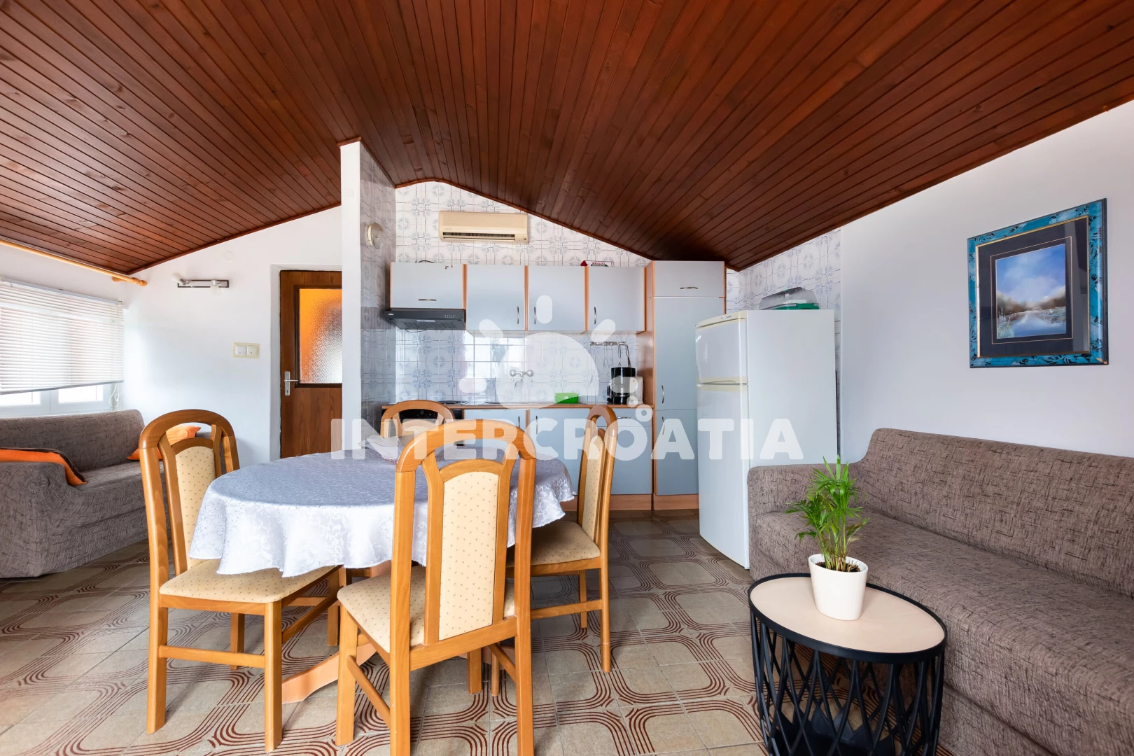 Apartmán (60 m2) s balkonem, a výhledem na moře. Nachází se v 1. patře objektu. Apartmán má 2 ložnice a je vhodný pro až 5 osob. Kuchyňská linka je vybavena varnou deskou, troubou, kávovarem,…
