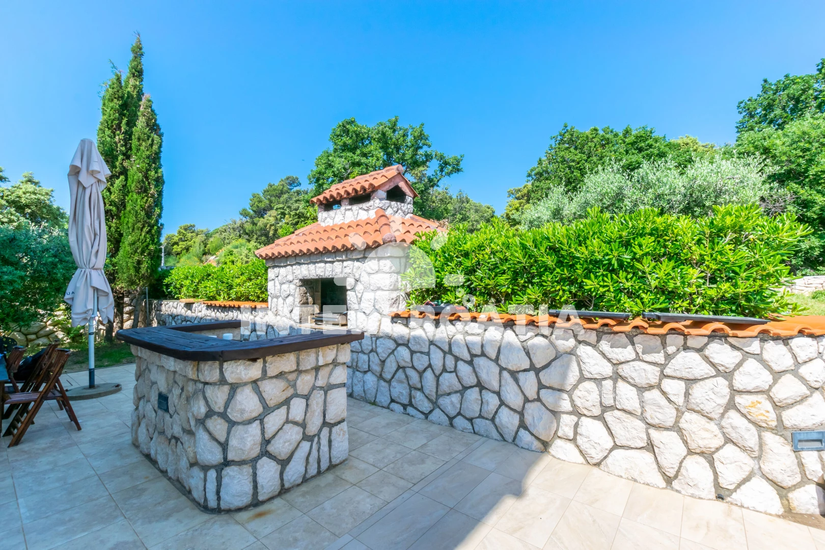 Vzdálenosti: Moře 300 m, pláž 300 m (písčitá, skalnatá, oblázková, větší kamení a betonové desky), restaurace 250 m, bar 250 m, tenisové kurty 300 m, potápění 300 m, mini golf 300 m, veřejná doprava 300 m, supermarket 1 km, ambulance 1,5 km, muzeum 3 km, pošta 3 km, banka 3 km, lékárna 3 km, centrum 3 km, půjčovna kol 3 km, půjčovna motorových člunů 3 km, marina 4 km, čerpací stanice 4 km, trajekt (Misnjak) 18 km, letiště (Rijeka) 80 km,