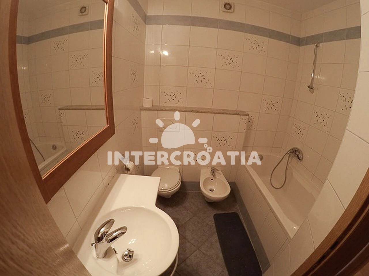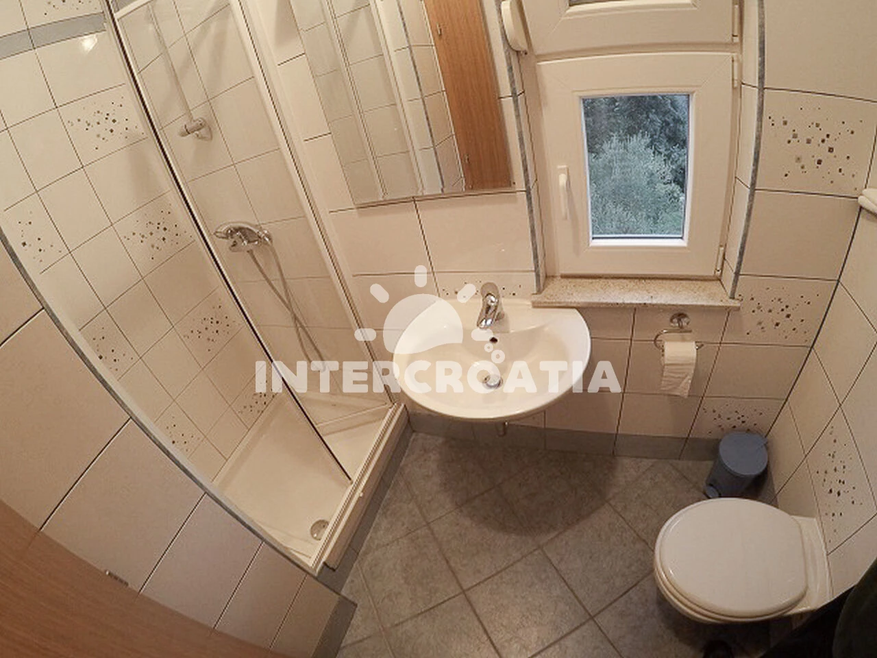 Apartmán se nachází 300 m od moře a pláže. Pláž je písčitá, skalnatá, oblázková, větší kamení a betonové desky. U objektu je k dispozici společná zahrada s posezením a grilem. Parkování je před domem.