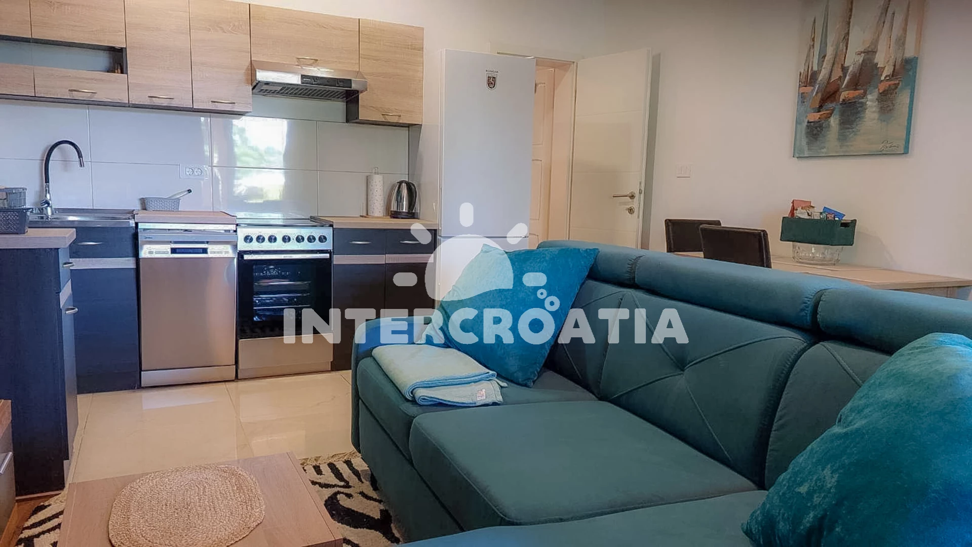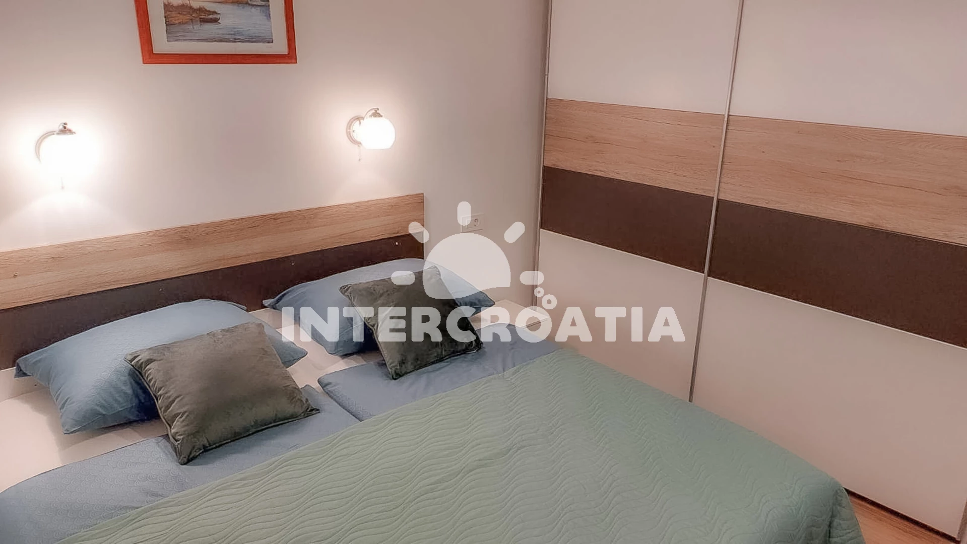 Vzdálenosti: Moře 50 m, pláž 100 m (písčitá a betonové desky), marina 50 m, supermarket 100 m, bar 100 m, restaurace 100 m, centrum 200 m, lékárna 200 m, pošta 200 m, trajekt (Lopar) 17 km, letiště (Rijeka) 74 km,