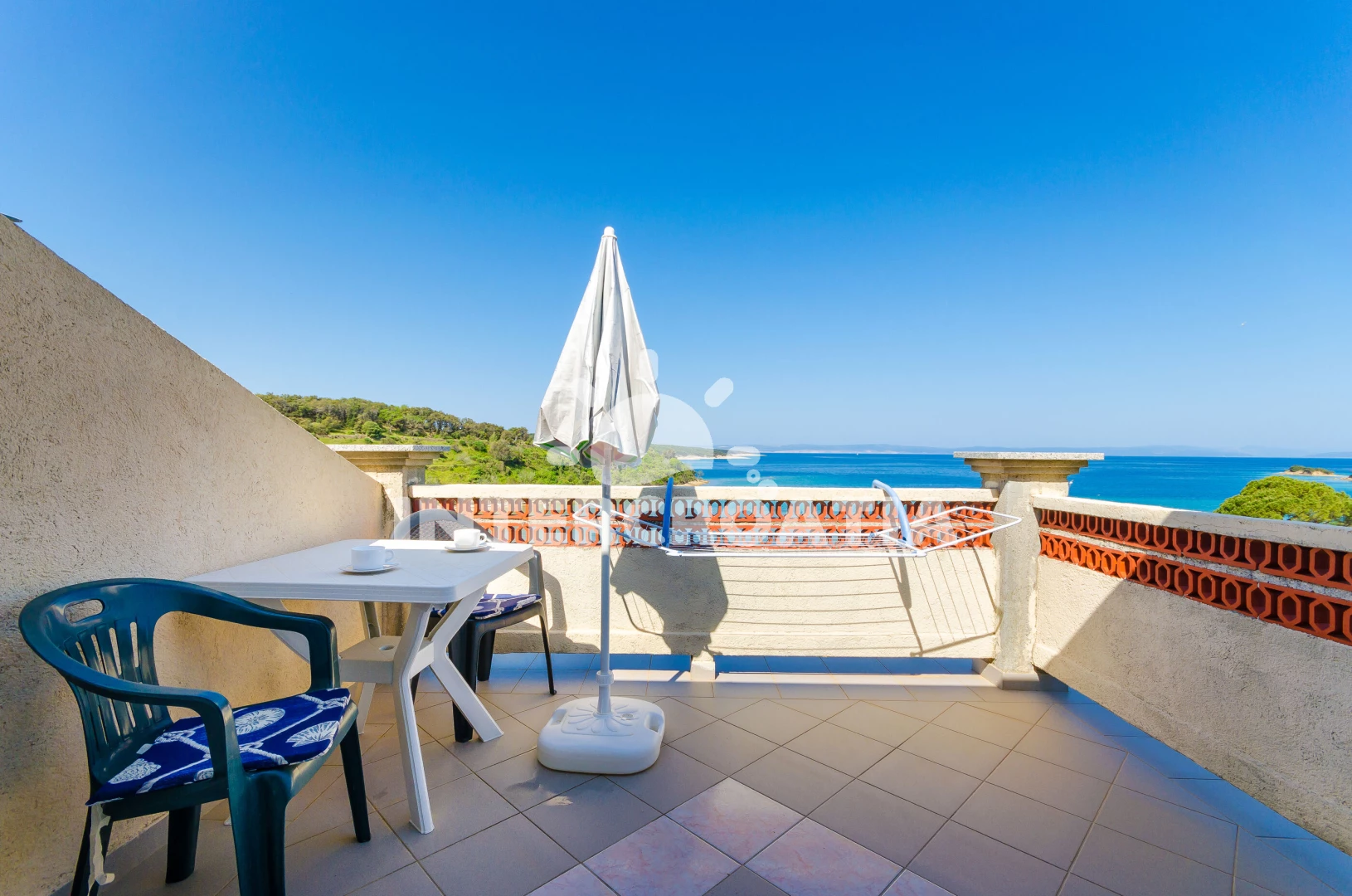 Apartmán (90 m2) s balkonem, s terasou, a výhledem na moře. Nachází se ve 2. patře objektu. Apartmán má 4 ložnice a je vhodný pro až 8 osob. Kuchyňská linka je vybavena varnou deskou, kávovarem, troubou, toustovačem, myčkou na nádobí, mikrovlnnou troubou, rychlovarnou konvicí, nádobím, lednicí, mrazákem. K dispozici televize se satelitním programem. První ložnice s dvoulůžkem. Druhá ložnice s dvoulůžkem. Třetí ložnice s dvoulůžkem. Čtvrtá ložnice s dvoulůžkem. První koupelna se sprchovým koutem, umyvadlem, fénem a WC. Druhá koupelna se sprchovým koutem, umyvadlem, fénem a WC. Třetí koupelna s vanou, umyvadlem, fénem a WC.