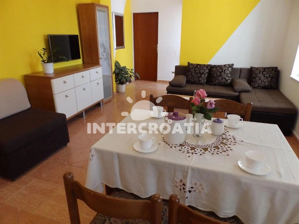 Apartmán (60 m2) s balkonem, s terasou, a výhledem na moře. Nachází se v přízemí objektu. Apartmán má 1 ložnici a je vhodný pro až 4 osoby. Kuchyňská linka je vybavena varnou deskou, troubou, kávovarem, myčkou na nádobí, mikrovlnnou troubou, rychlovarnou konvicí, nádobím, lednicí, mrazákem. V obývací místnosti je rozložitelná pohovka (extra lůžko pro 2 osoby). K dispozici televize se satelitním programem, žehlička. Ložnice s dvoulůžkem. Koupelna se sprchovým koutem, umyvadlem, fénem a WC. Hostům je k dispozici parkování u objektu zdarma.