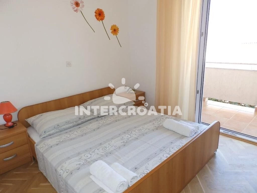 Apartmán (120 m2) s balkonem, s terasou, a výhledem na moře. Nachází se v 1. patře objektu. Apartmán má 4 ložnice a je vhodný pro až 8 osob. Kuchyňská linka je vybavena varnou deskou, troubou, kávovarem, myčkou na nádobí, mikrovlnnou troubou, rychlovarnou konvicí, nádobím, lednicí, mrazákem. K dispozici televize se satelitním programem, žehlička. První ložnice s přistýlkou, dvoulůžkem. Druhá ložnice s dvoulůžkem. Třetí ložnice s dvoulůžkem. Čtvrtá ložnice s přistýlkou. První koupelna se sprchovým koutem, umyvadlem, fénem a WC. Druhá koupelna se sprchovým koutem, umyvadlem, fénem a WC. Třetí koupelna s vanou, umyvadlem, fénem a WC. Hostům je k dispozici parkování u objektu zdarma.