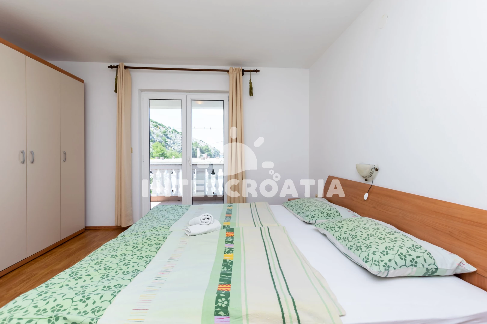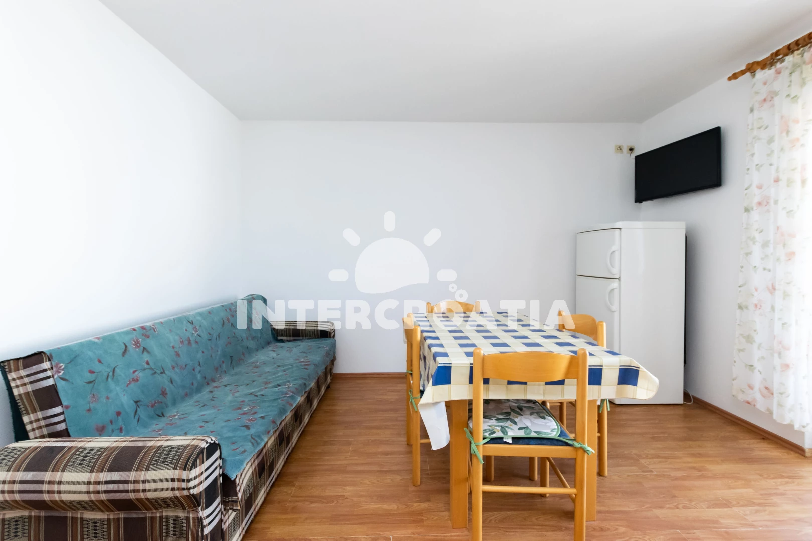 Apartmán (65 m2) s terasou, s balkonem, a výhledem na moře. Nachází se ve 2. patře objektu. Apartmán má 1 ložnici a je vhodný pro až 3 osoby. Kuchyňská linka je vybavena varnou deskou, kávovarem, troubou, rychlovarnou konvicí, nádobím, lednicí, mrazákem. K dispozici televize, žehlička. Ložnice s dvoulůžkem, přistýlkou. Koupelna s vanou, umyvadlem, fénem a WC.