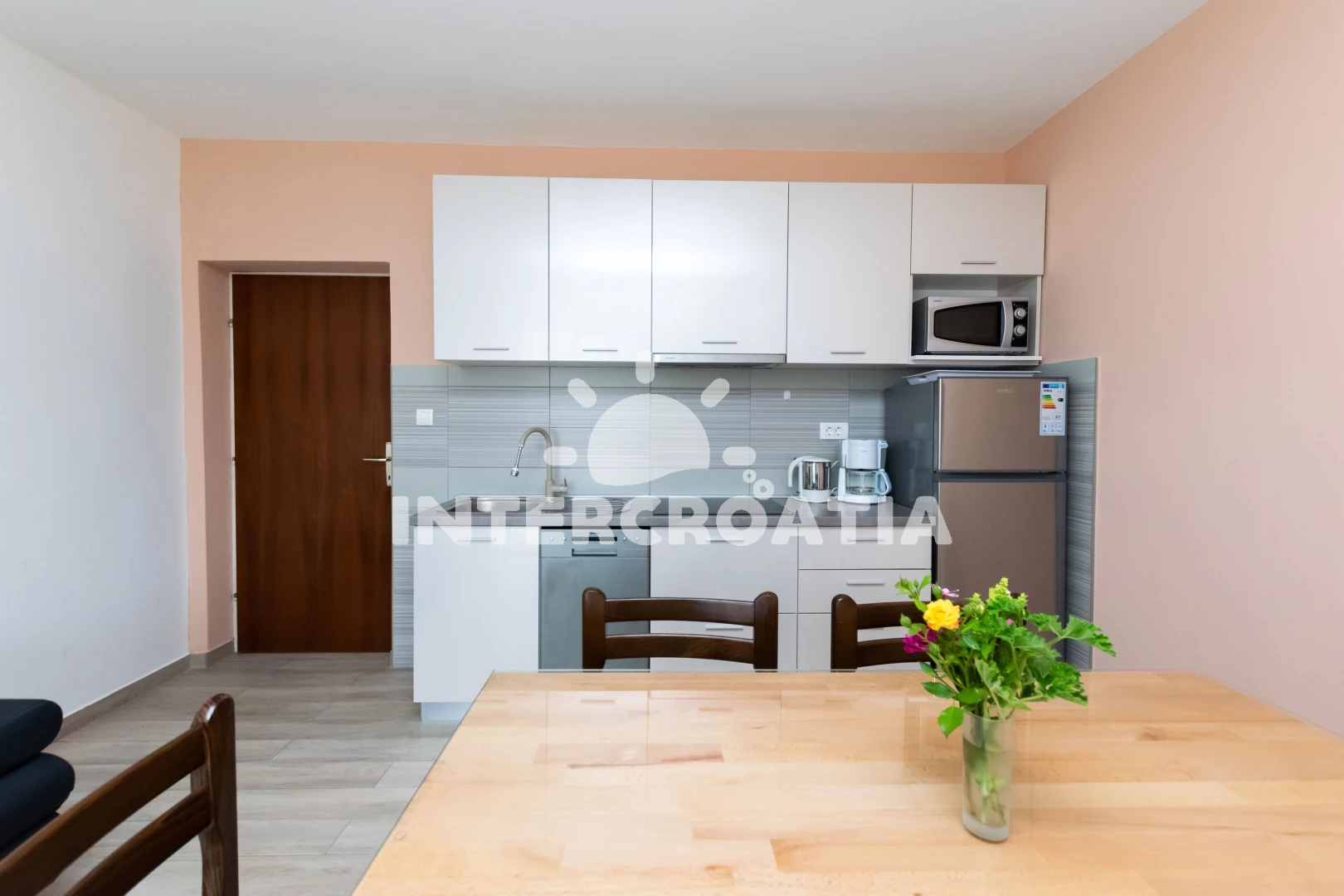Velmi dobrá lokalita, nedaleko pláže nebo Konzumu. Pokoj dobré velikosti, balkon je úžasný - s výhledem na moře. - por. Cestovní kancelář řekla, že v bytě by měla být pračka - nebyla. Byla nám nabídnuta možnost vyprat si prádlo u pronajímatele - ale za příplatek. Kuchyň je dobře vybavená, ale nemá troubu ani sklenice na víno. Majitelé bydlí ve stejném domě a jsou vlastně docela milí, pokud vše děláte „správně“. Pozornost je věnována třídění odpadu, přesné parkovací poloze atd.