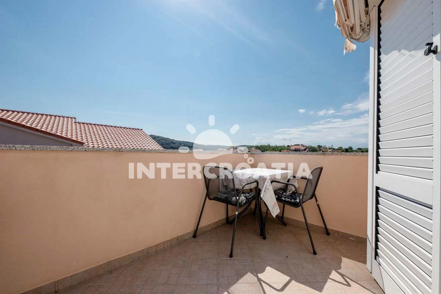 Vzdálenosti: Moře 50 m, pláž 50 m (písek), bar 15 m, veřejná doprava 20 m, směnárna 20 m, restaurace 50 m, tenisové kurty 100 m, půjčovna kol 100 m, mini golf 100 m, kotviště pro čluny 150 m, supermarket 150 m, ambulance 200 m, potápění 300 m, lékárna 600 m, pošta 1 km, centrum 1 km, trajekt (Lopar) 1,2 km, čerpací stanice 1,8 km, půjčovna motorových člunů 3 km, banka 12 km, muzeum 12 km, letiště (Rijeka) 100 km,