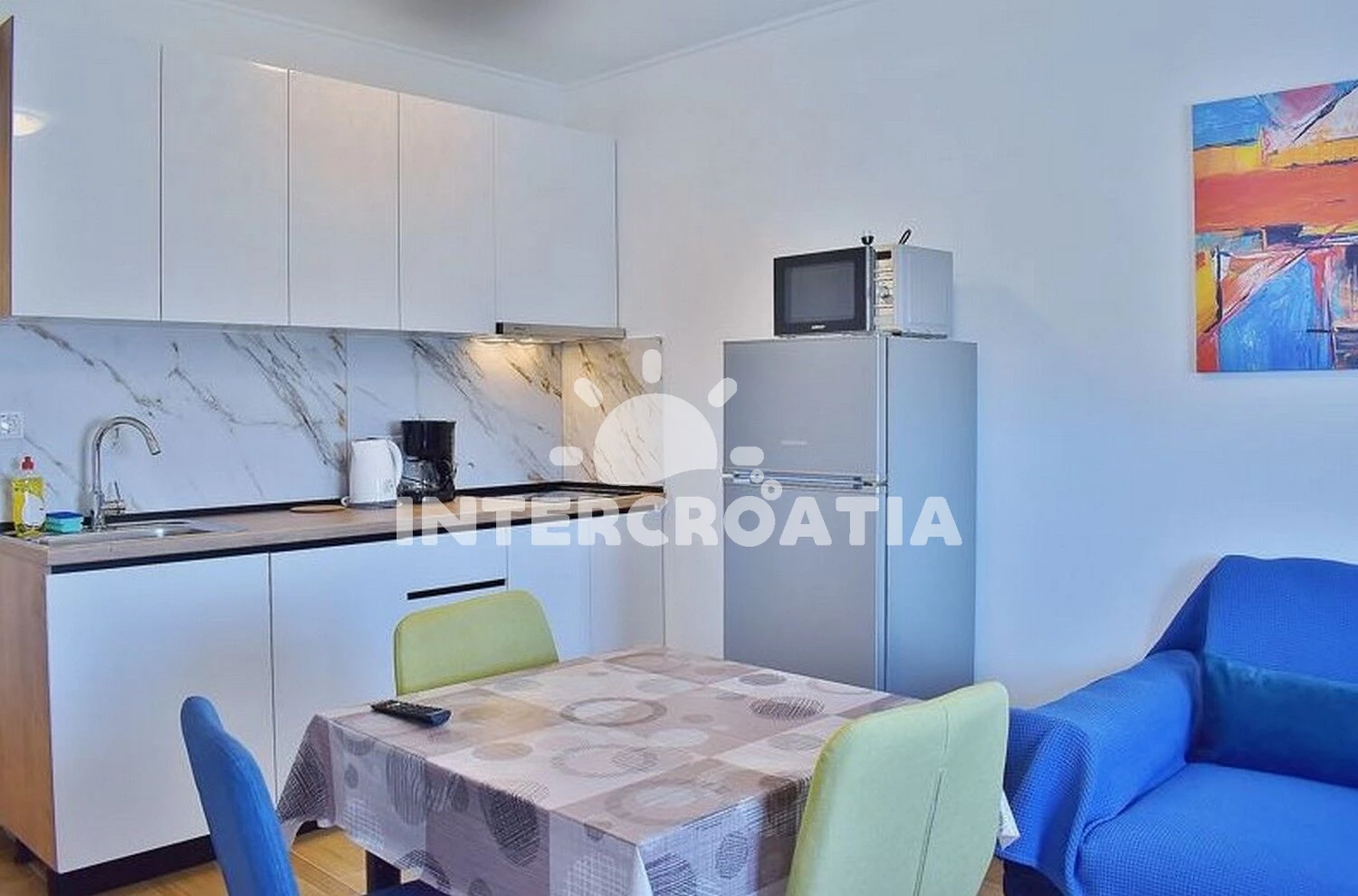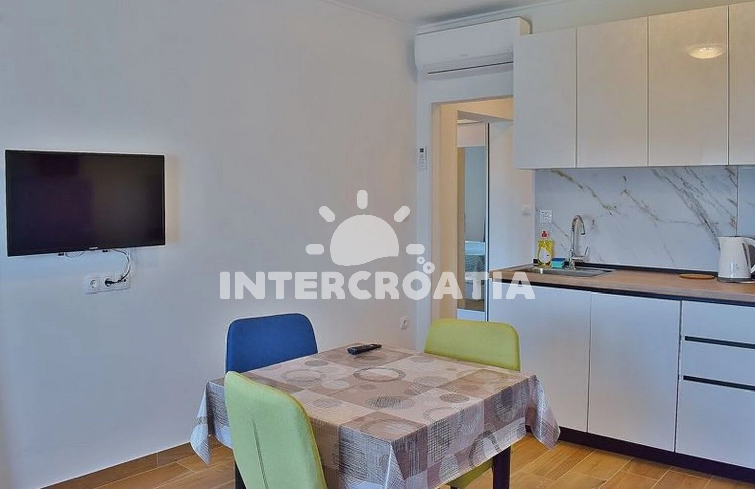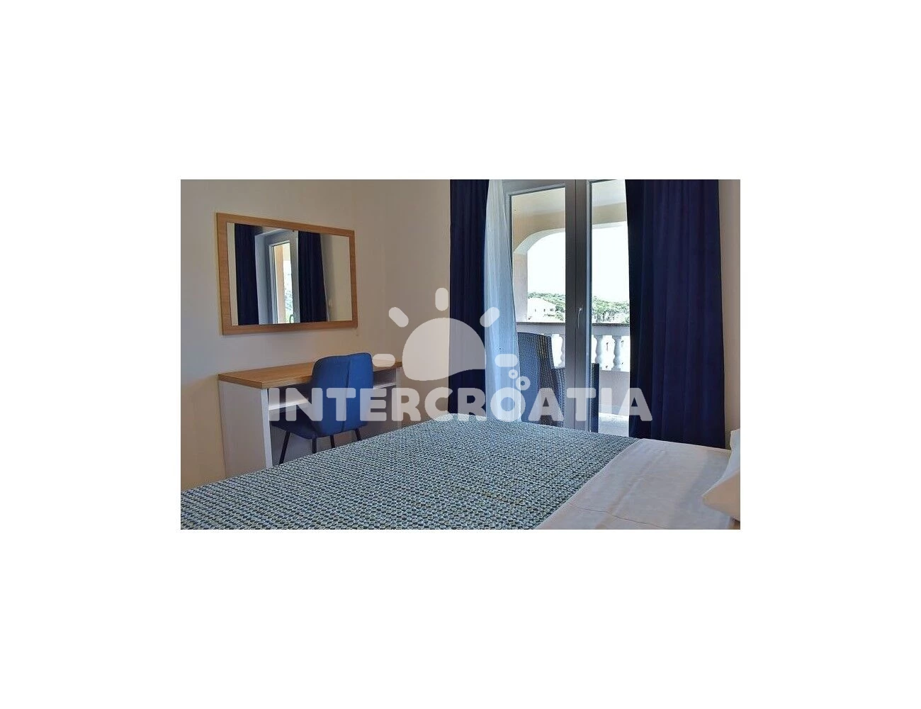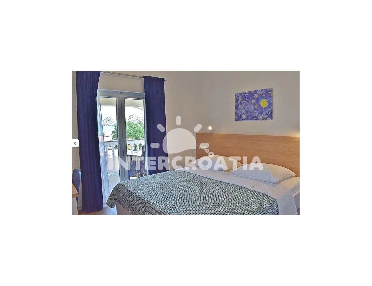 Apartmán (32 m2) s balkonem, a výhledem na moře. Nachází se ve 2. patře objektu. Apartmán má 1 ložnici a je vhodný pro až 2 osoby. Kuchyňská linka je vybavena varnou deskou, kávovarem, myčkou na nádobí, mikrovlnnou troubou, rychlovarnou konvicí, nádobím, lednicí, mrazákem. K dispozici televize, žehlička. Ložnice s dvoulůžkem. Koupelna se sprchovým koutem, umyvadlem, fénem a WC.