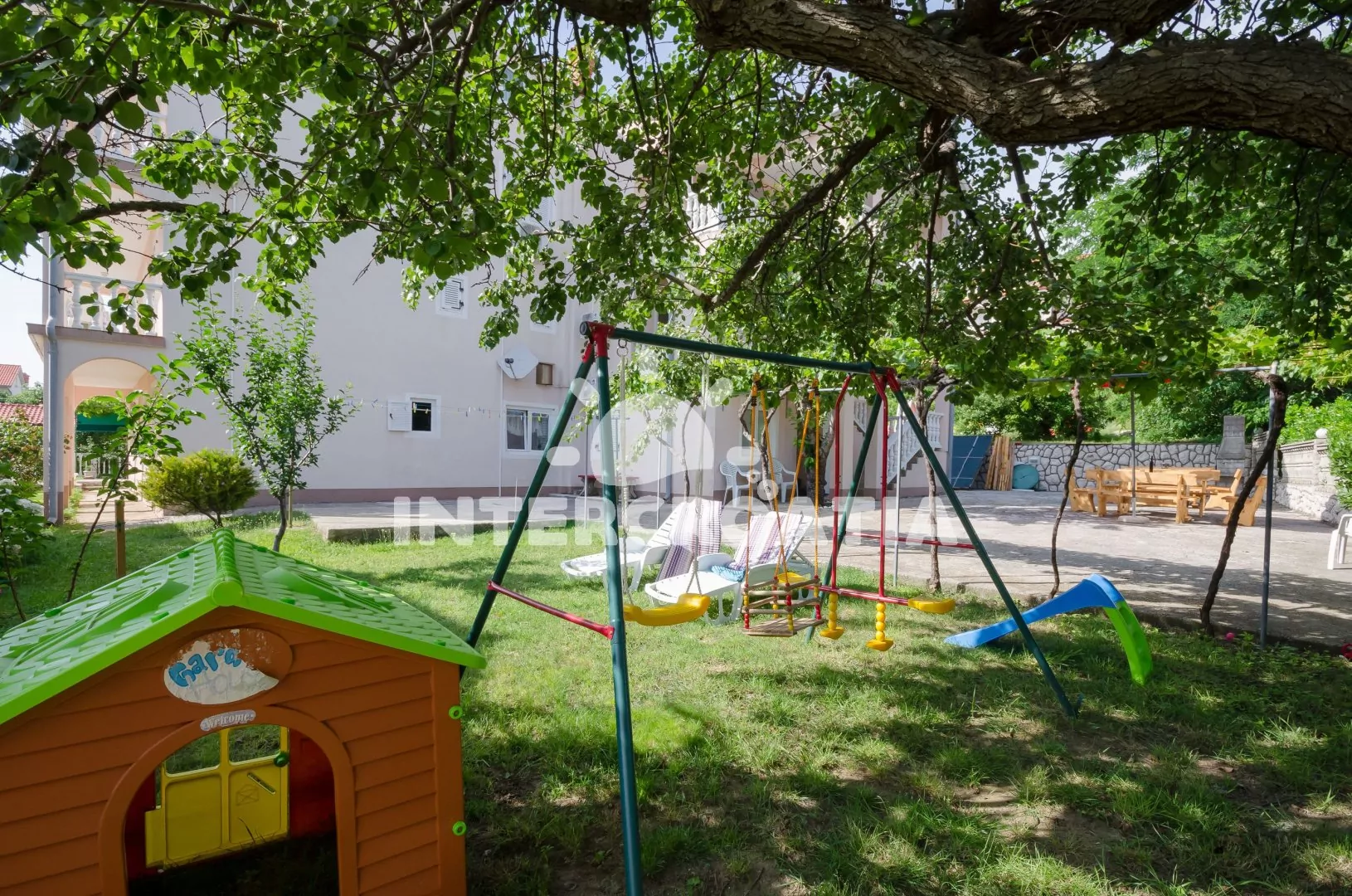 Vila se nachází v příjemné lokalitě ostrova, disponuje zahradou, terasou se zděným grilem a venkovním posezením.