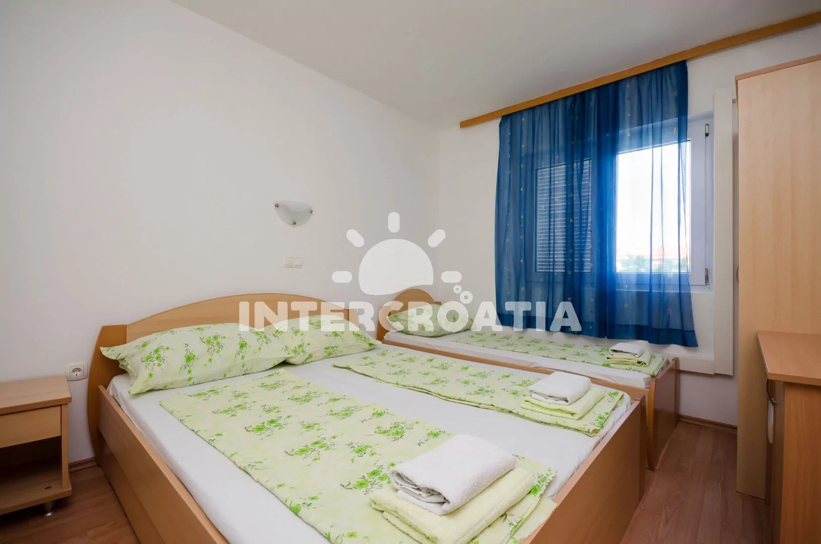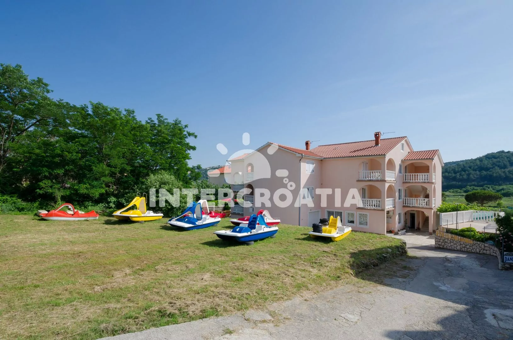 Vzdálenosti: Moře 250 m, pláž (písečná) 300 m, centrum 300 m, market 300 m, pošta 300 m, lékárna 300 m, nemocnice 200 m, restaurace 100 m, muzeum 6 km, směnárna 300 m, banka 300 m, kotviště pro čluny 1,5 km, potápěčský klub 300 m, půjčovna motorových člunů 300 m, půjčovna kol 300 m, tenisové kurty 300 m, minigolf 300 m, diskotéka 300 m, bar 100 m, čerpací stanice 1,1 km, veřejná doprava 300 m, trajekt (Lopar) 1 km, letiště (Rijeka).