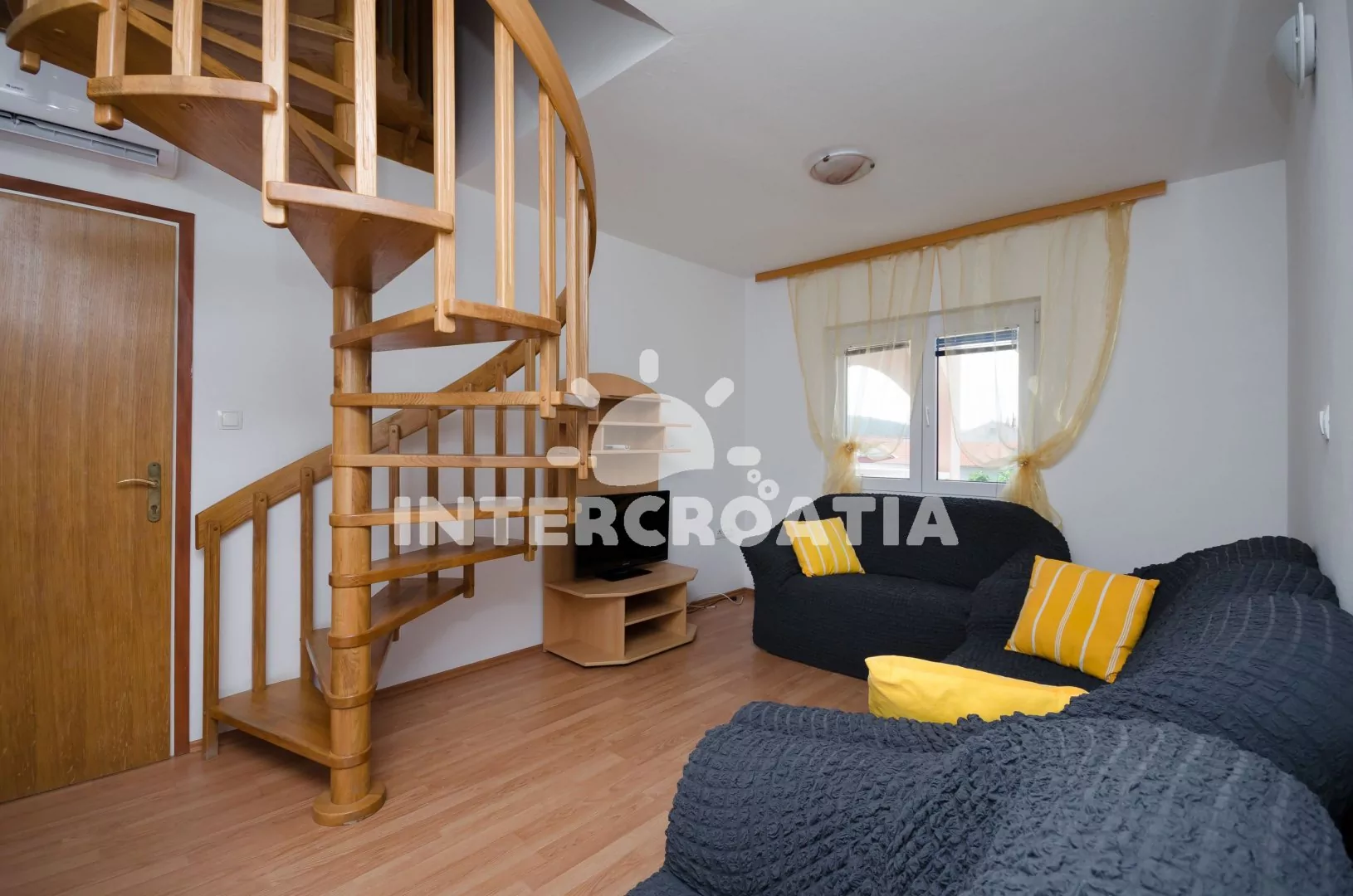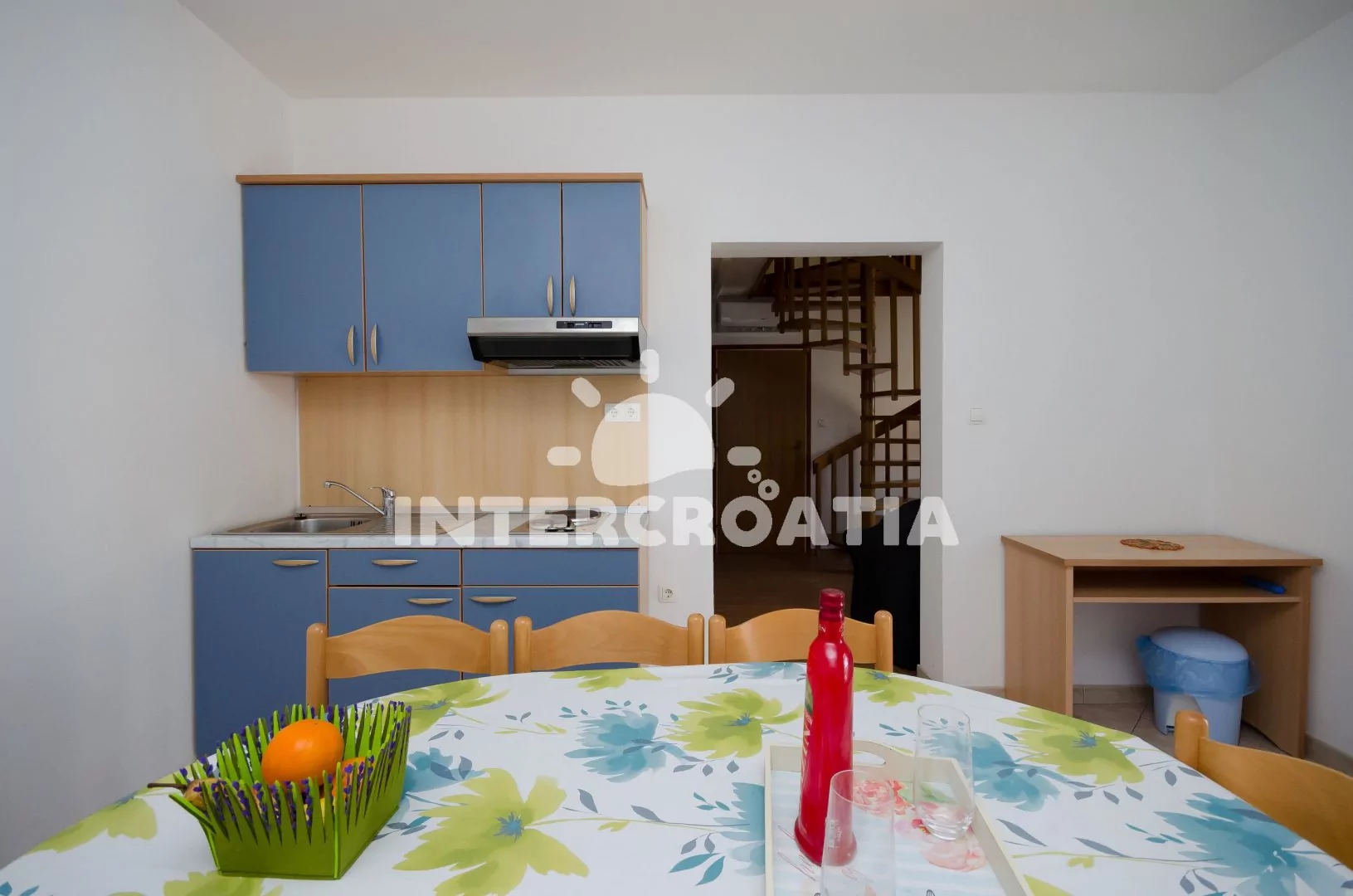 Prostorný apartmán (110 m2) na dvou etážích s venkovním posezením na terase. Obývací pokoj je částečně oddělený od kuchyně. Kuchyňská linka s elektrickým dvouplotýnkovým sporákem, digestoří,…