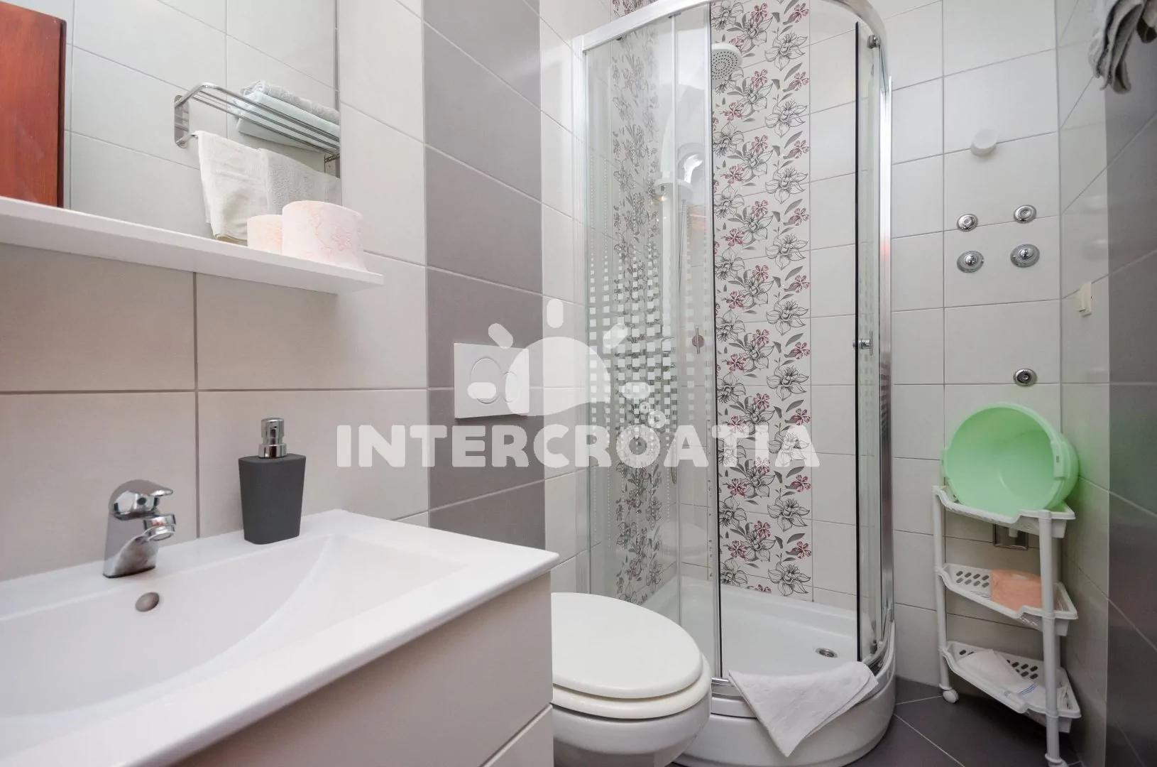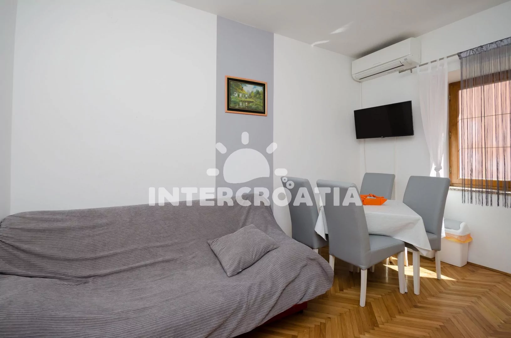 Apartmán (45 m2) s terasou a výhledem na moře se nachází v 1. patře domu a je vhodný pro 2 až 4 osoby. Obývací pokoj je spojený s kuchyní. Kuchyňská linka je vybavena varnou deskou, digestoří,…