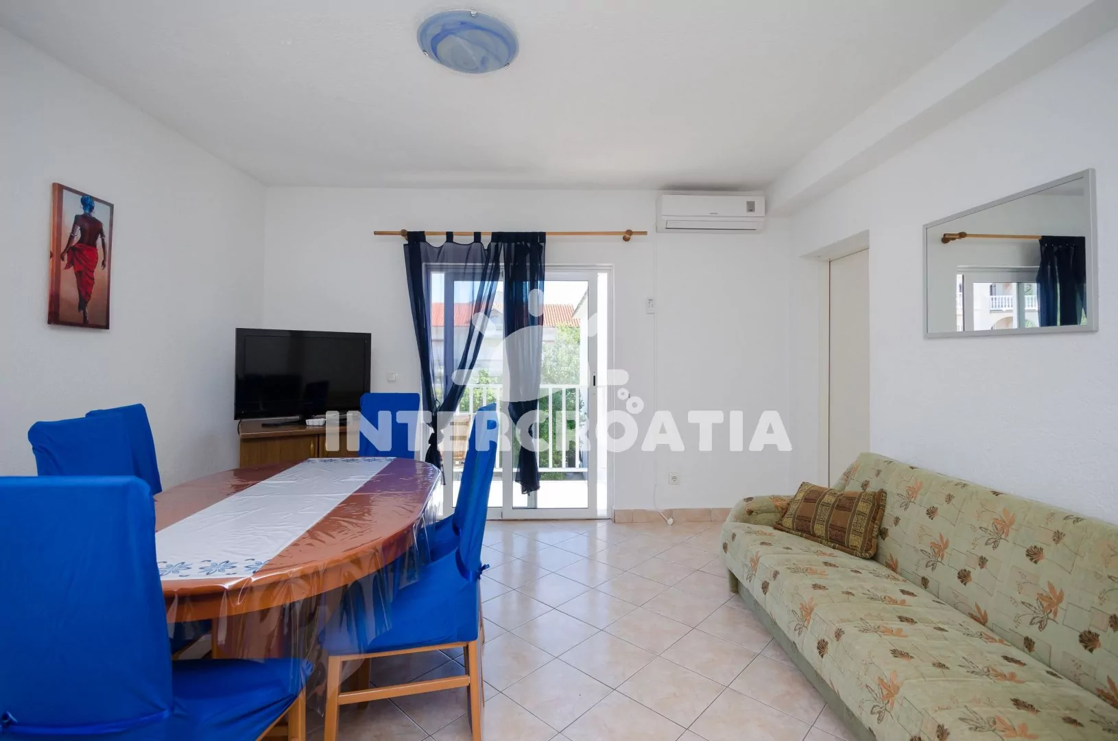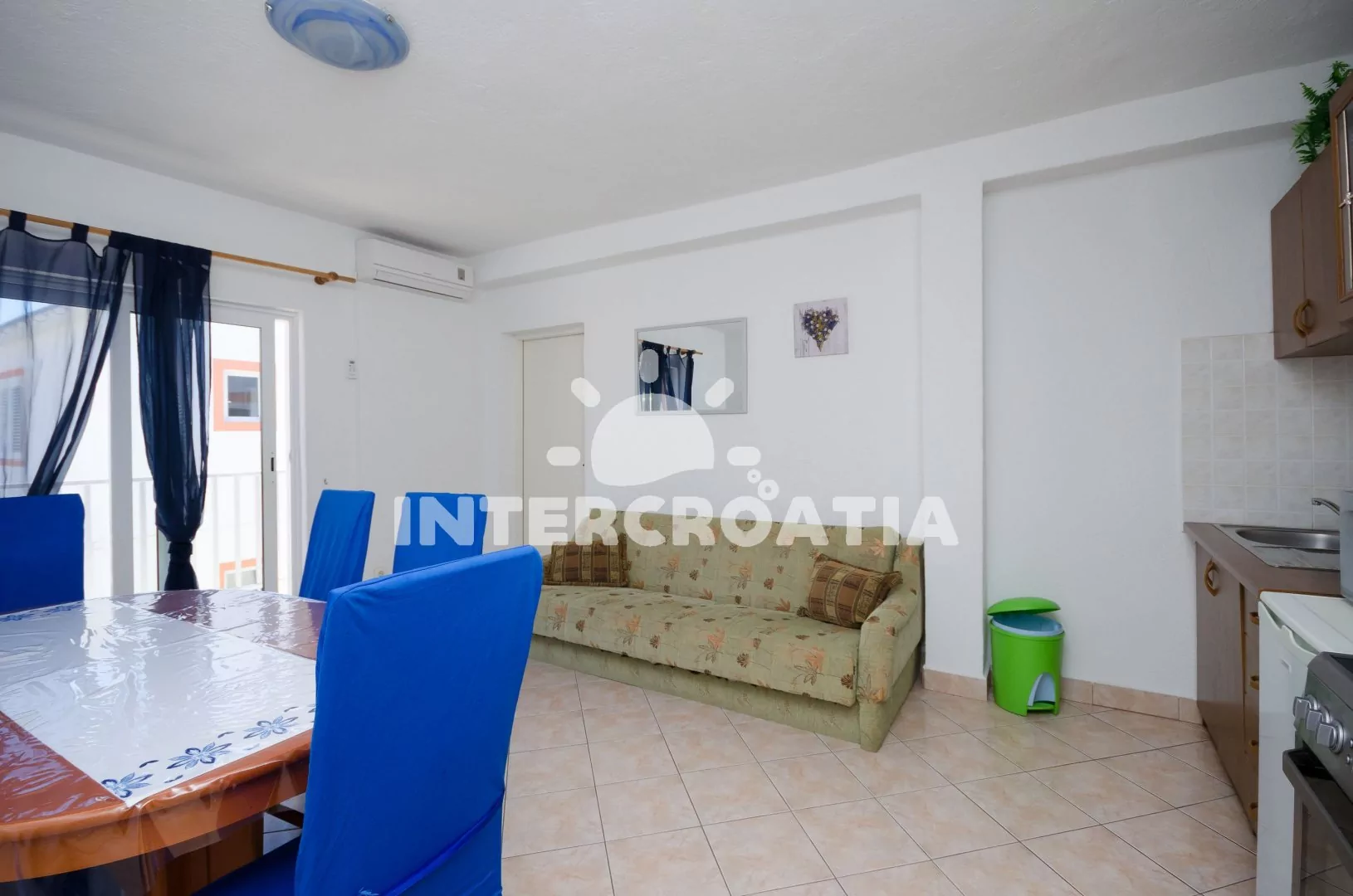 Apartmán (45 m2) s balkonem a venkovním posezením se nachází v 1. patře domu a je vhodný pro 2 až 4 osoby. Obývací pokoj je spojený s kuchyní. Kuchyňská linka je vybavena sporákem s troubou, rychlovarnou konvicí, mikrovlnnou troubou, kávovarem, nádobím a lednicí s mrazákem. Obývací pokoj s jídelním stolem, pohovkou (rozložitelná na extra lůžko pro 1 osobu), televizí se satelitním programem, klimatizací a vstupem na balkon. Ložnice je vybavena jedním dvoulůžkem, přistýlkou a vstupem na balkon. Koupelna se sprchovým koutem, umyvadlem a wc. Hostům je k dispozici parkování u objektu zdarma.