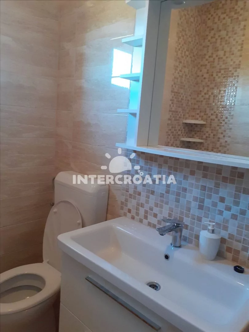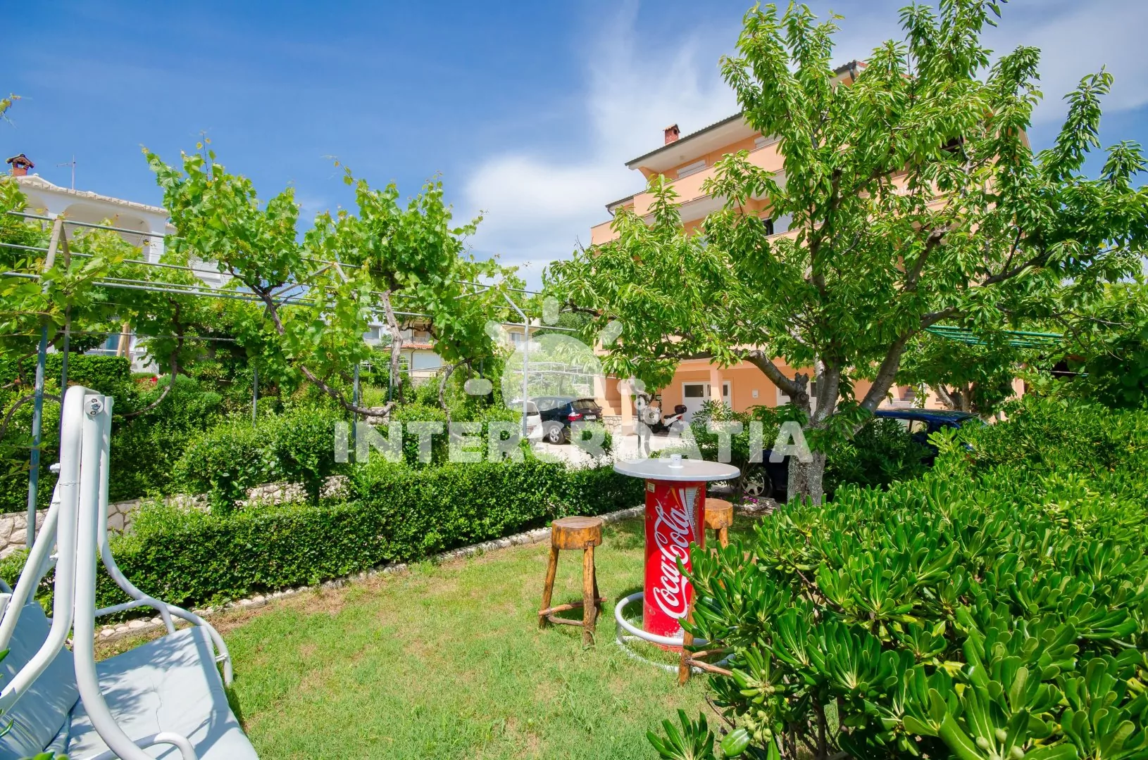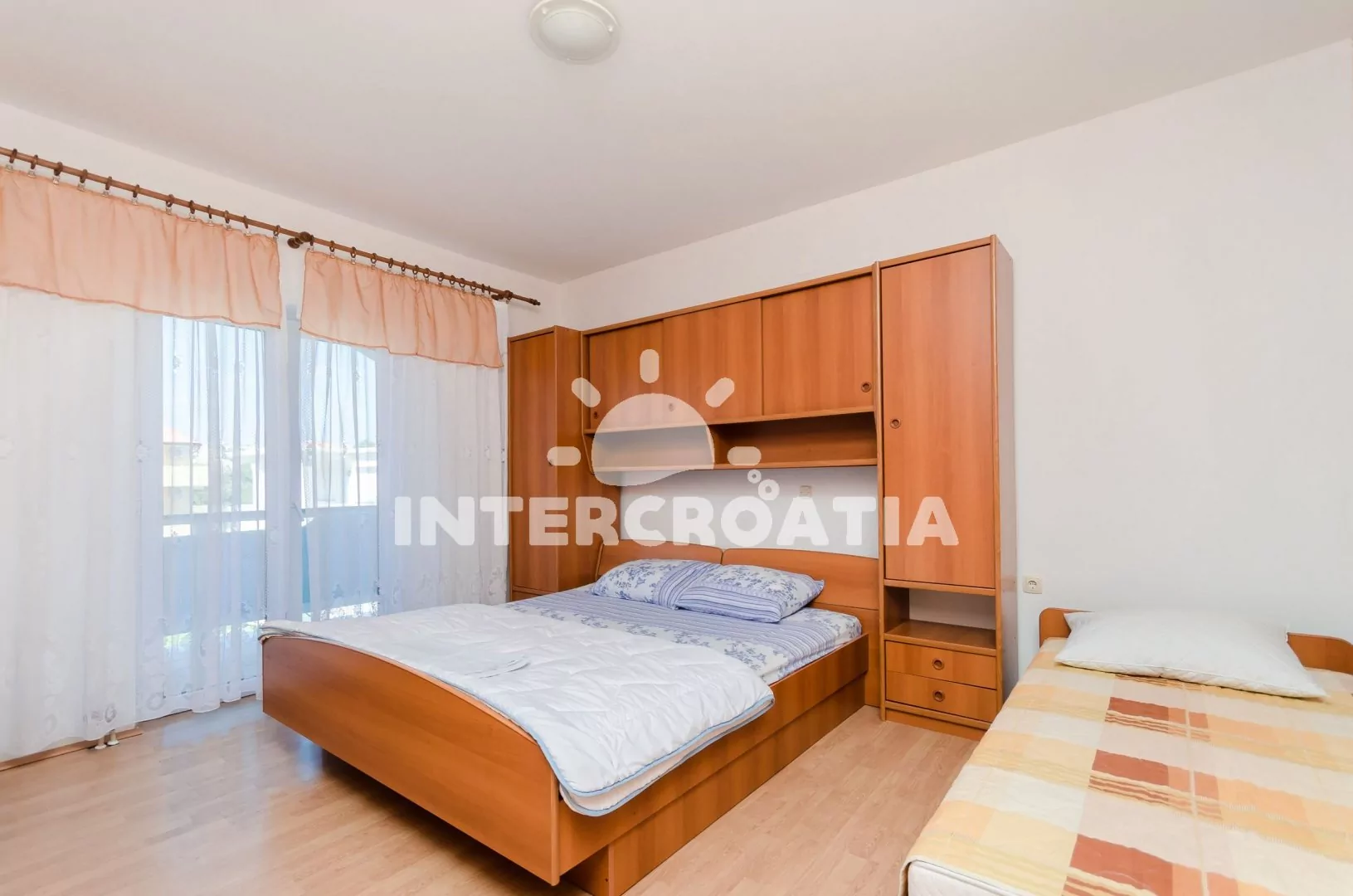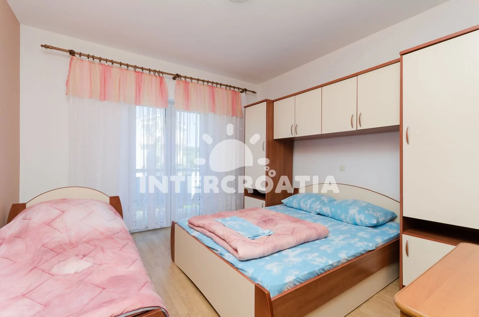 Apartmán (80 m2) s vlastní terasou a venkovním posezením se nachází v 2. patře domu a je vhodný pro 6 osob. Obývací místnost je spojena s kuchyní. Kuchyňská linka je vybavena varnou deskou, digestoří, vestavěnou troubou, kávovarem, nádobím a lednicí s mrazákem. Obývací místnost s jídelním stolem pro 6 osob, televizí se satelitním programem, přistýlkou a klimatizací. První ložnice s dvoulůžkem a vstupem na terasu. Druhá ložnice s dvoulůžkem, jedním jednolůžkem a vstupem na terasu. Koupelna s vanou, umyvadlem, pračkou a wc. Hostům je k dispozici parkování u objektu zdarma.