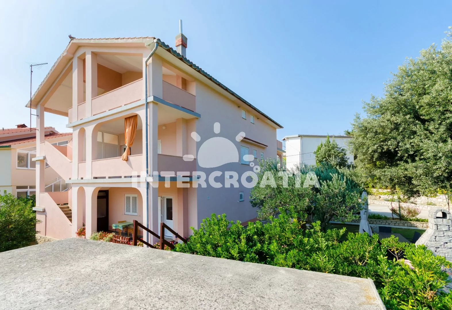 Samostatně stojící dům se zahradou nabízí ubytování ve 3 klimatizovaných apartmánech s lodžiemi a venkovním posezením. Dům se nachází 350 m pěší chůzí od písečné pláže jménem "Rajska Plaža". K dispozici je společná zahrada s terasou, grilem a posezením. Přímo u domu parkoviště pro automobily.