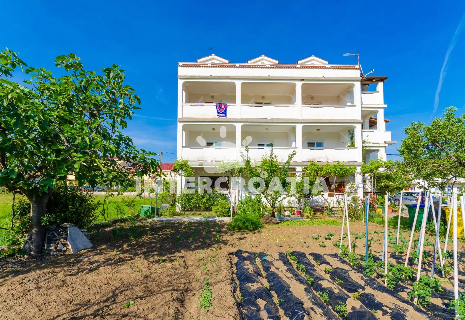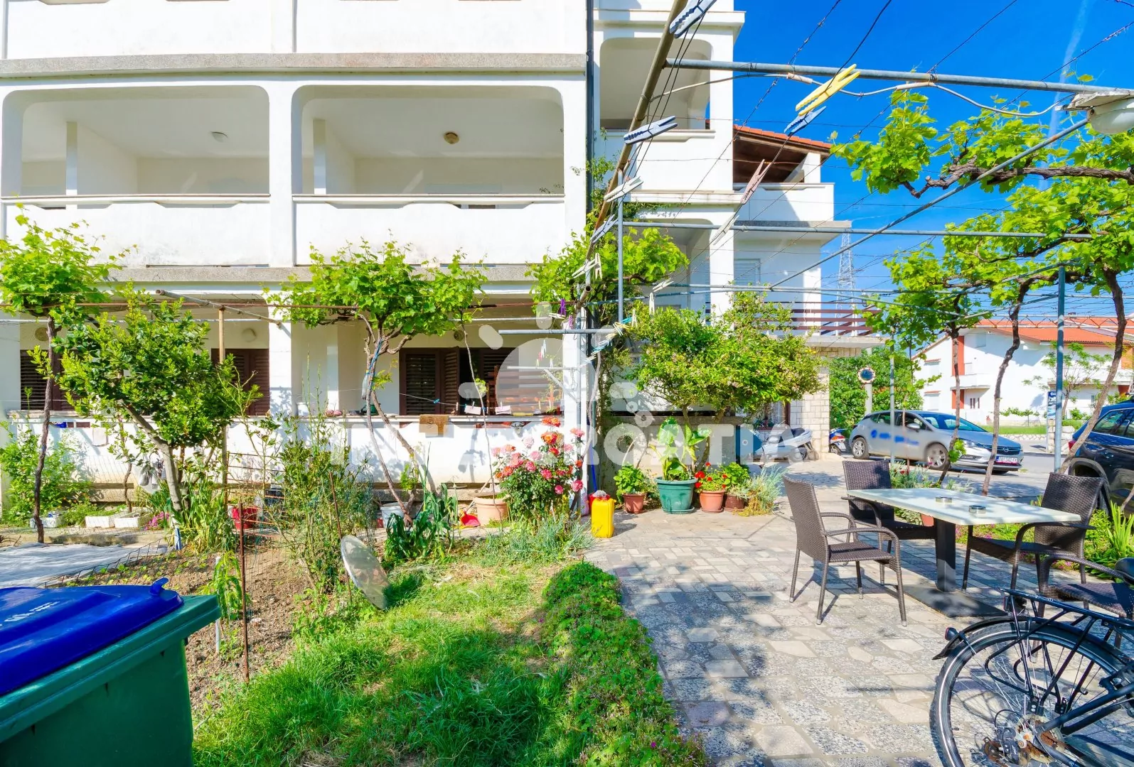 Samostatně stojící apartmánový dům se zahradou se nachází 8 minut pěší chůzí od moře a písečné pláže. Dům nabízí ubytování v klimatizovaných apartmánech s lodžiemi a venkovním posezením. U domu zahrada se společnou terasou, posezením a zděným grilem. Parkovací místa pro automobily u domu.
