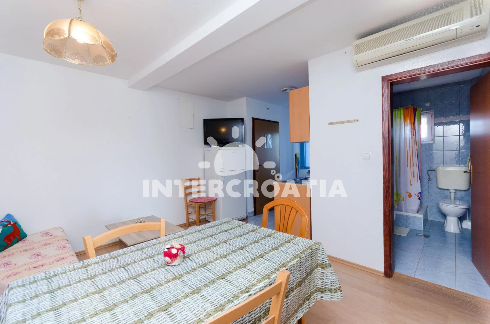 Vzdálenosti: Moře a písčitá pláž 700 m, centrum, směnárna, supermarket, pošta a restaurace 200 m, bar 300 m, veřejná doprava 150 m, lékárna 250 m, půjčovna motorových člunů 2 km, ambulance 900 m, trajekt 1,5 km, tenisové kurty a mini golf 1,2 km, potápění 2 km, čerpací stanice 2km, diskotéka 1,2 km, půjčovna cyklistických kol 1,1 km, muzeum a banka 12 km, letiště (Rijeka) 100 km.