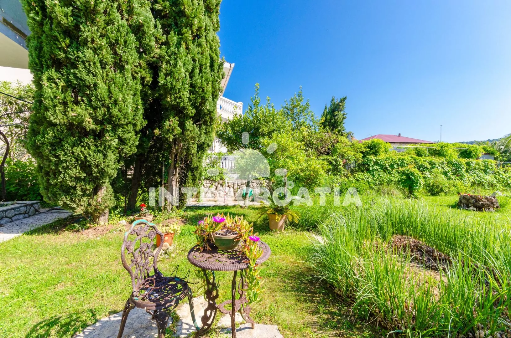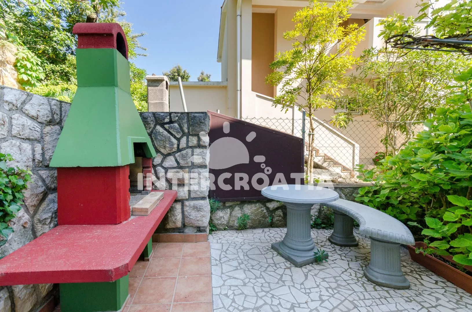 Apartmánový dům se zahradou a vzrostlou zelení se nachází do 3 minut pěší chůze od moře a pláže. Dům nabízí ubytování ve 2 klimatizovaných apartmánech s lodžiemi a venkovním posezením. V zahradě je k dispozici společná terasa s posezením a zděným grilem. U domu parkovací místa pro automobily.