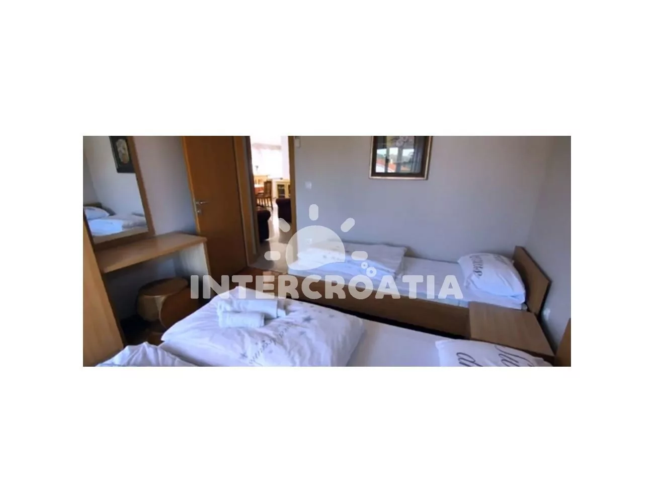 Vzdálenosti: Moře a písčitá pláž 500 m, centrum 50 m, směnárna 30 m, restaurace, bar, pošta, supermarket, veřejná doprava 50 m, lékárna 200 m, půjčovna motorových člunů 500 m, ambulance, trajekt, půjčovna cyklistických kol, banka 800 m, potápění, tenis, minigolf, diskotéka 900 m, přístav 1,5 km, letiště (Rijeka) 10,6 km, čerpací stanice, muzeum 12 km.