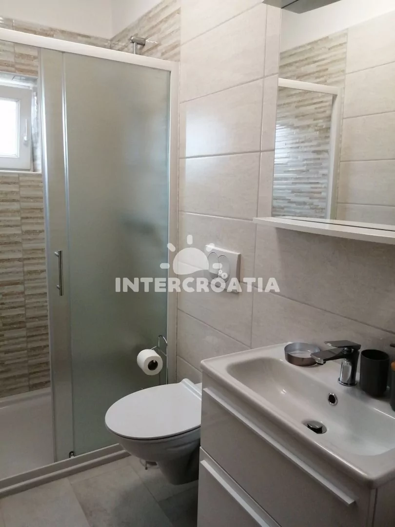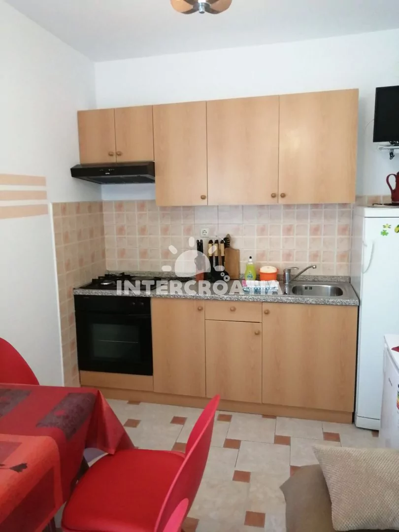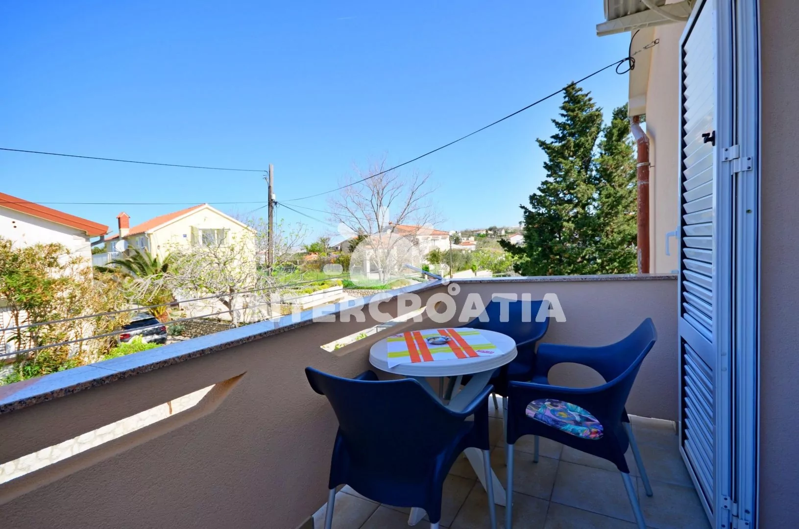Apartmán (37 m2) s balkonem a venkovním posezením se nachází v 1. patře domu. Apartmán má 1 ložnici a je vhodný pro 2 až 4 osoby. Obývací pokoj je spojený s kuchyní. Kuchyňská linka je vybavena varnou deskou, digestoří, vestavěnou troubou, kávovarem, nádobím a lednicí s mrazákem. Obývací pokoj s jídelním stolem, pohovkou (rozložitelná na extra lůžko pro 1 osobu), televizí se satelitním programem a klimatizací. Ložnice s dvoulůžkem, přistýlkou a vstupem na balkon. Koupelna se sprchovým koutem, umyvadlem a wc. Hostům je k dispozici parkování u objektu zdarma.