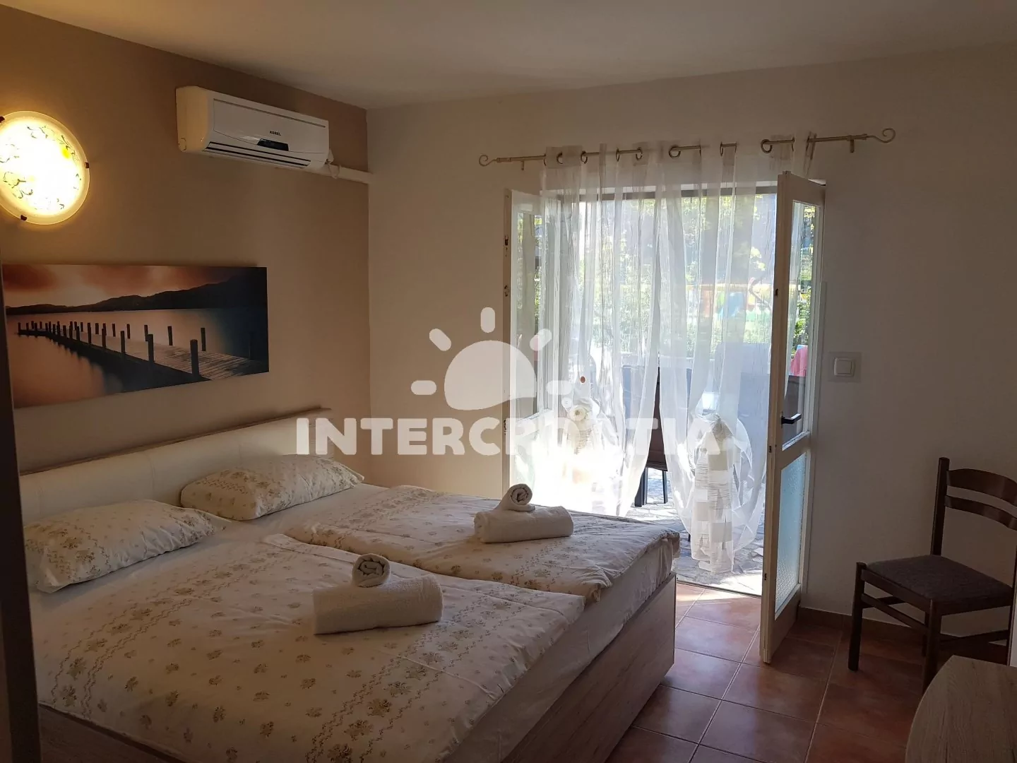 Samostatně stojící apartmánový dům se nachází 700 m pěší chůzí od moře a písečné pláže. U domu je k dispozici společná zahrada, s terasou, posezením, zahradní kuchyní a zděným grilem. Pro děti jsou na zahradě prolézačky. Apartmány mají vlastní lodžie a jsou klimatizované. U domu jsou parkovací místa pro automobily.