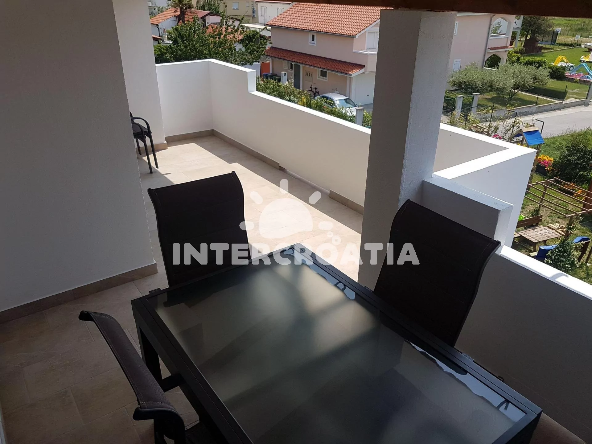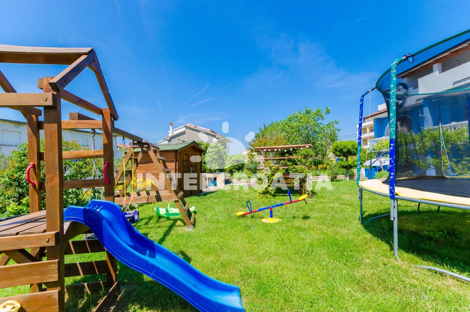 Samostatně stojící apartmánový dům se nachází 700 m pěší chůzí od moře a písečné pláže. U domu je k dispozici společná zahrada, s terasou, posezením, zahradní kuchyní a zděným grilem. Pro děti jsou na zahradě prolézačky. Apartmány mají vlastní lodžie a jsou klimatizované. U domu jsou parkovací místa pro automobily.
