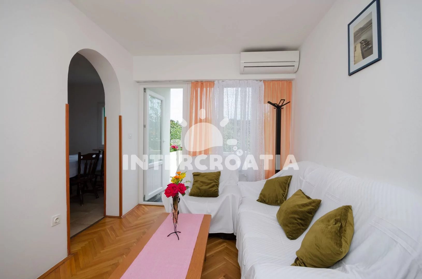 Apartmán (55 m2) s balkonem/terasou a výhledem na moře se nachází ve 2. patře domu. Apartmán má 2 ložnice a je vhodný pro až 4 osoby. Obývací pokoj je částečně oddělený od kuchyně. Kuchyňská linka je…