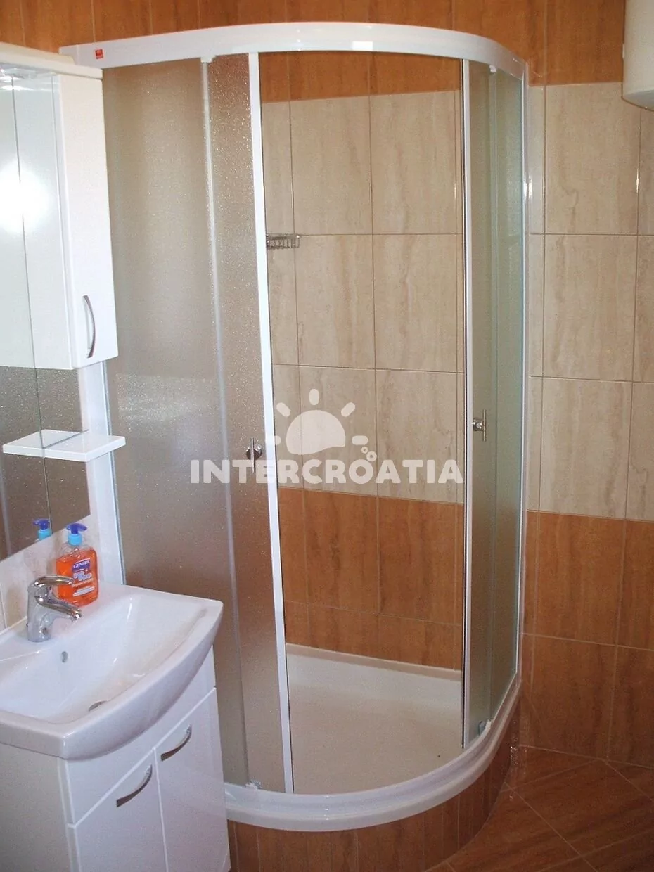Apartmán (110 m2) s balkonem a venkovním posezením se nachází v 1. patře domu. Apartmán má 3 ložnice, 3 koupelny a je vhodný pro až 8 osob. Obývací pokoj je spojený s kuchyní. Kuchyňská linka je vybavena varnou deskou, digestoří, vestavěnou troubou, myčkou na nádobí, rychlovarnou konvicí, mikrovlnnou troubou, kávovarem, toustovačem, nádobím a lednicí s mrazákem. Obývací pokoj s jídelním stolem, televizí se satelitním programem a klimatizací. První a druhá ložnice s dvoulůžkem, jedním jednolůžkem, klimatizací a vstupem na balkon. Třetí ložnice s dvoulůžkem a klimatizací. Tři koupelny se sprchovým koutem, umyvadlem a wc. Hostům je k dispozici parkování u objektu zdarma.
