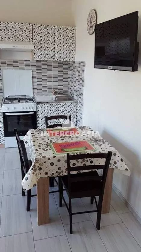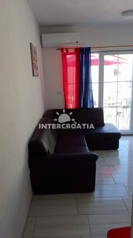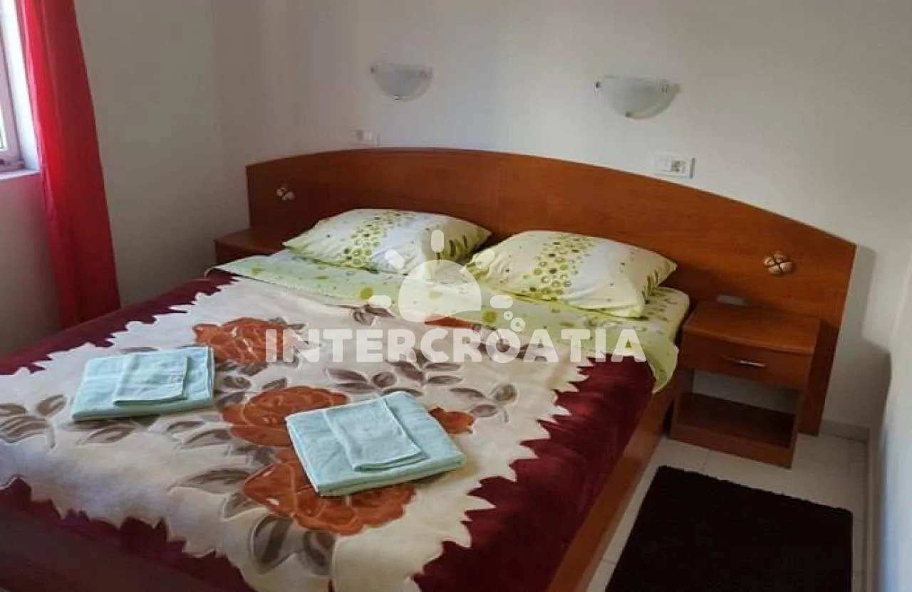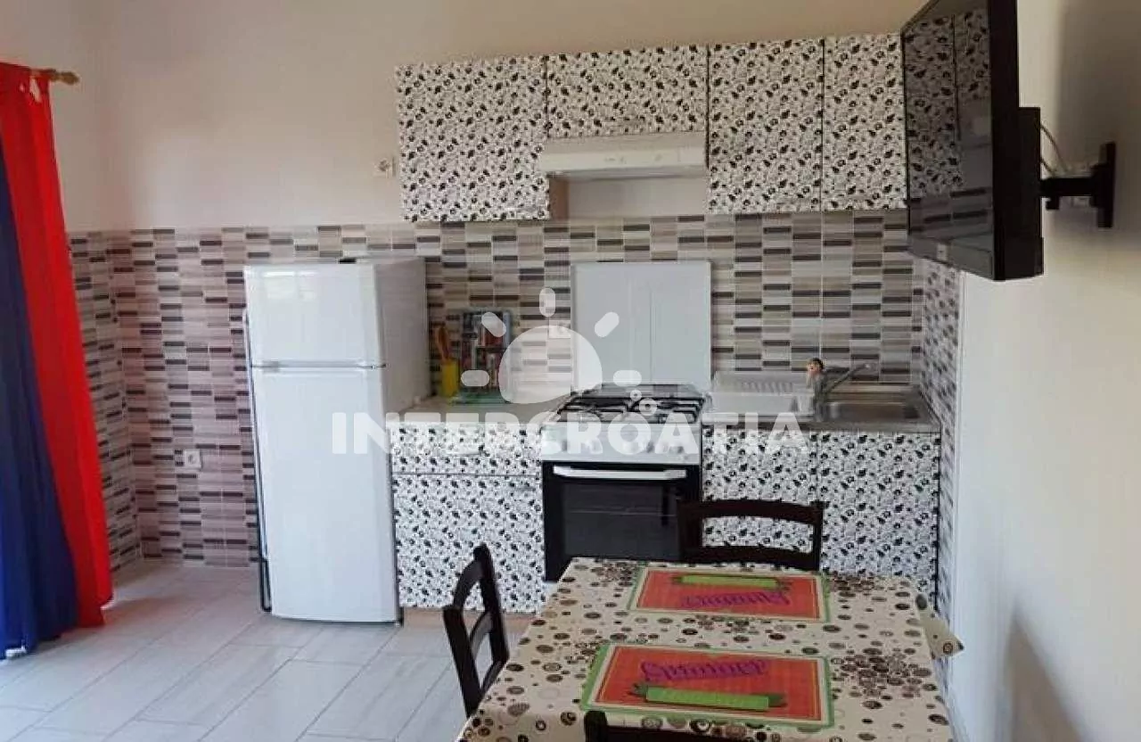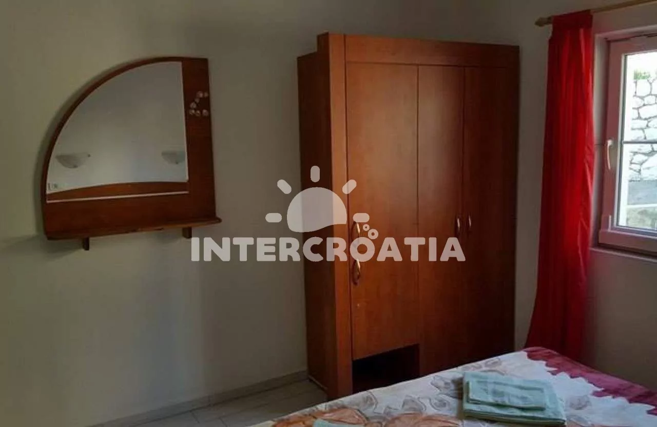 Apartmán (50 m2) s terasou, posezením a výhledem na moře se nachází ve zvýšeném přízemí domu. Apartmán má 1 ložnici a je vhodný pro 2 osoby. Obývací pokoj je spojený s kuchyní. Kuchyňská linka je vybavena sporákem s troubou, digestoří, mikrovlnnou troubou, rychlovarnou konvicí, kávovarem, nádobím a lednicí s mrazákem. Obývací pokoj s jídelním stolem, pohovkou, televizí se satelitním programem, rádiem, klimatizací a vstupem na terasu. Ložnice s jedním dvoulůžkem. Koupelna se sprchovým koutem, umyvadlem a wc. Hostům je k dispozici parkování u objektu zdarma.
