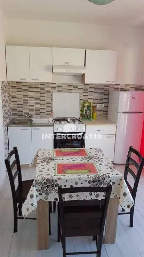 Apartmán (50 m2) s terasou/balkonem, posezením a výhledem na moře se nachází ve zvýšeném přízemí domu. Apartmán má 2 ložnice a je vhodný pro až 4 osoby. Obývací pokoj je spojený s kuchyní. Kuchyňská…