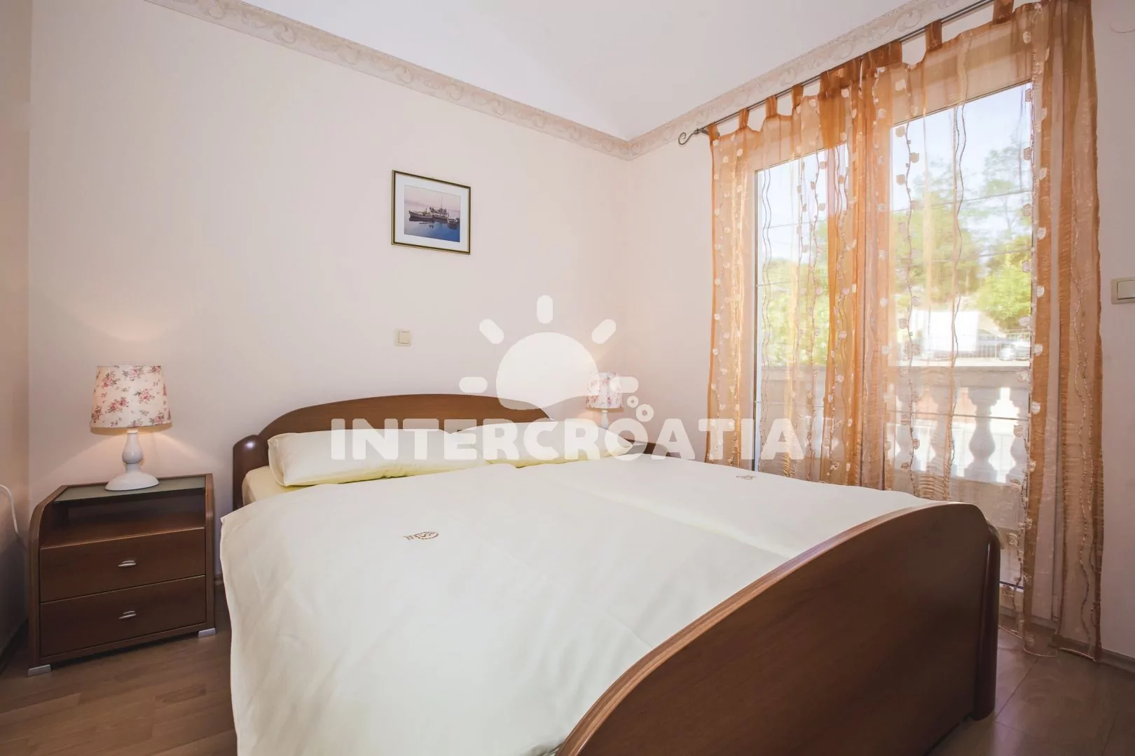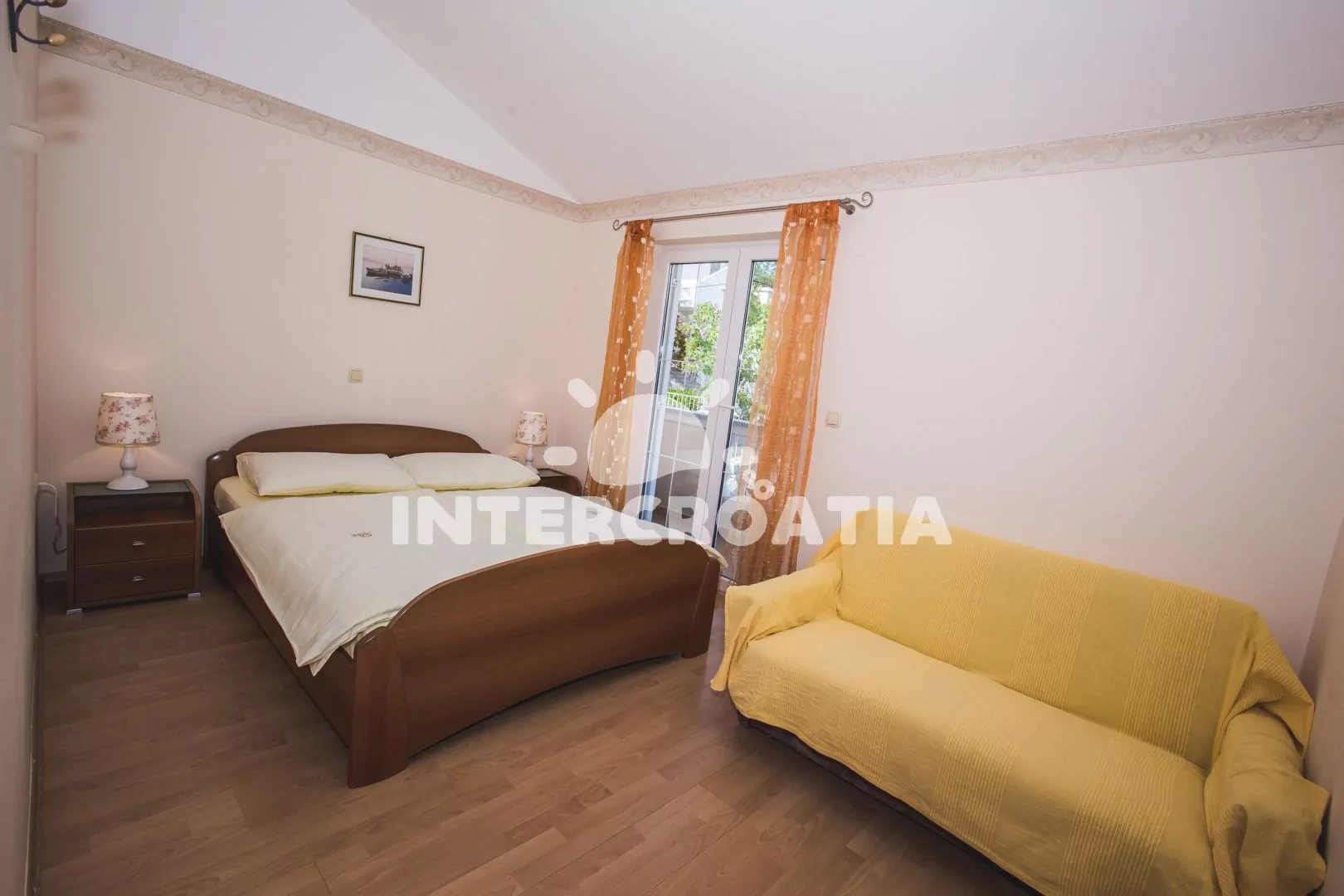 Apartmán (35 m2) s balkonem a venkovním posezením se nachází v 1. patře domu. Apartmán má 1 ložnici a je vhodný pro 2 až 4 osoby. Obývací pokoj je spojený s kuchyní. kuchyňská linka je vybavena dvouplotýnkovým vařičem, digestoří, mikrovlnnou troubou, kávovarem, rychlovarnou konvicí, toustovačem, nádobím a lednicí s mrazákem. Obývací pokoj s jídelním stolem, pohovkou (rozložitelná na extra lůžko pro 2 osoby), televizí, klimatizací a vstupem na balkon. Ložnice s dvoulůžkem a vstupem na balkon. Koupelna se sprchovým koutem, umyvadlem, fénem a wc. Hostům je k dispozici parkování u objektu zdarma.