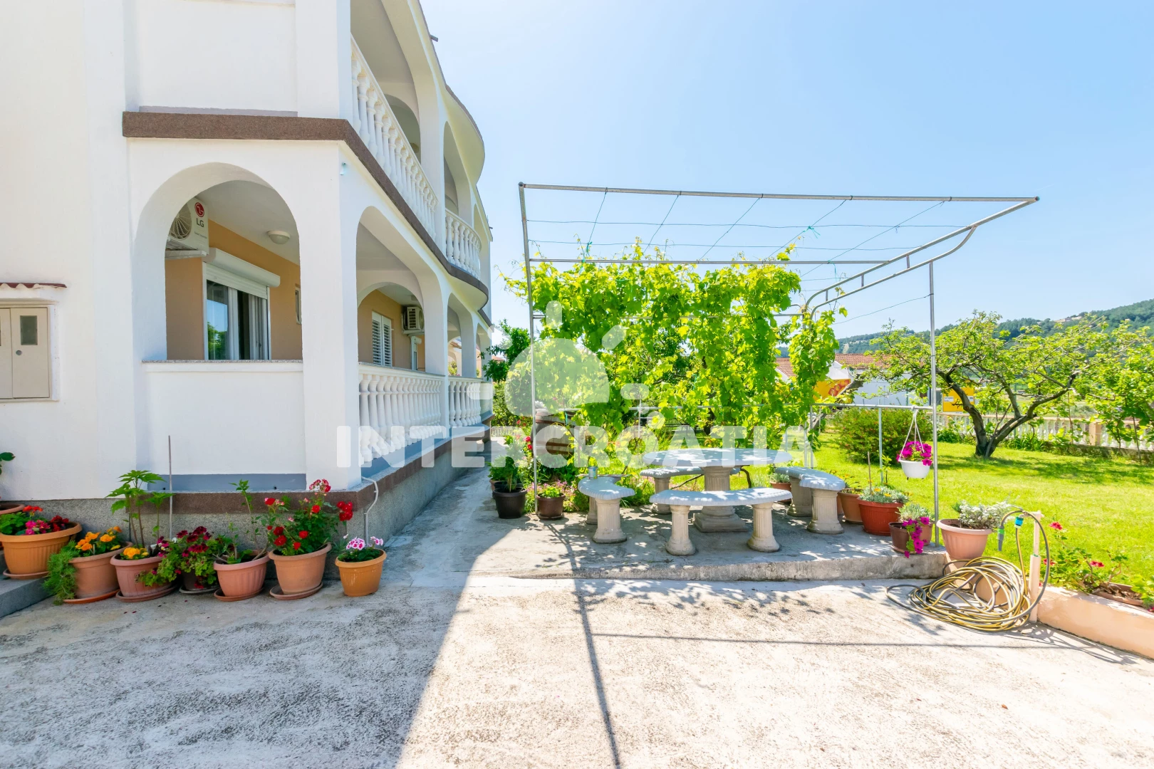 Samostatně stojící apartmánový dům se nachází 5 minut pěší chůzí od písečné pláže a moře. Dům nabízí ubytování v klimatizovaných apartmánech s lodžiemi a venkovním posezením. U domu je k dispozici společná zahrada s terasou, posezením, pergolou a zděným grilem. Parkoviště pro automobily je přímo u domu.