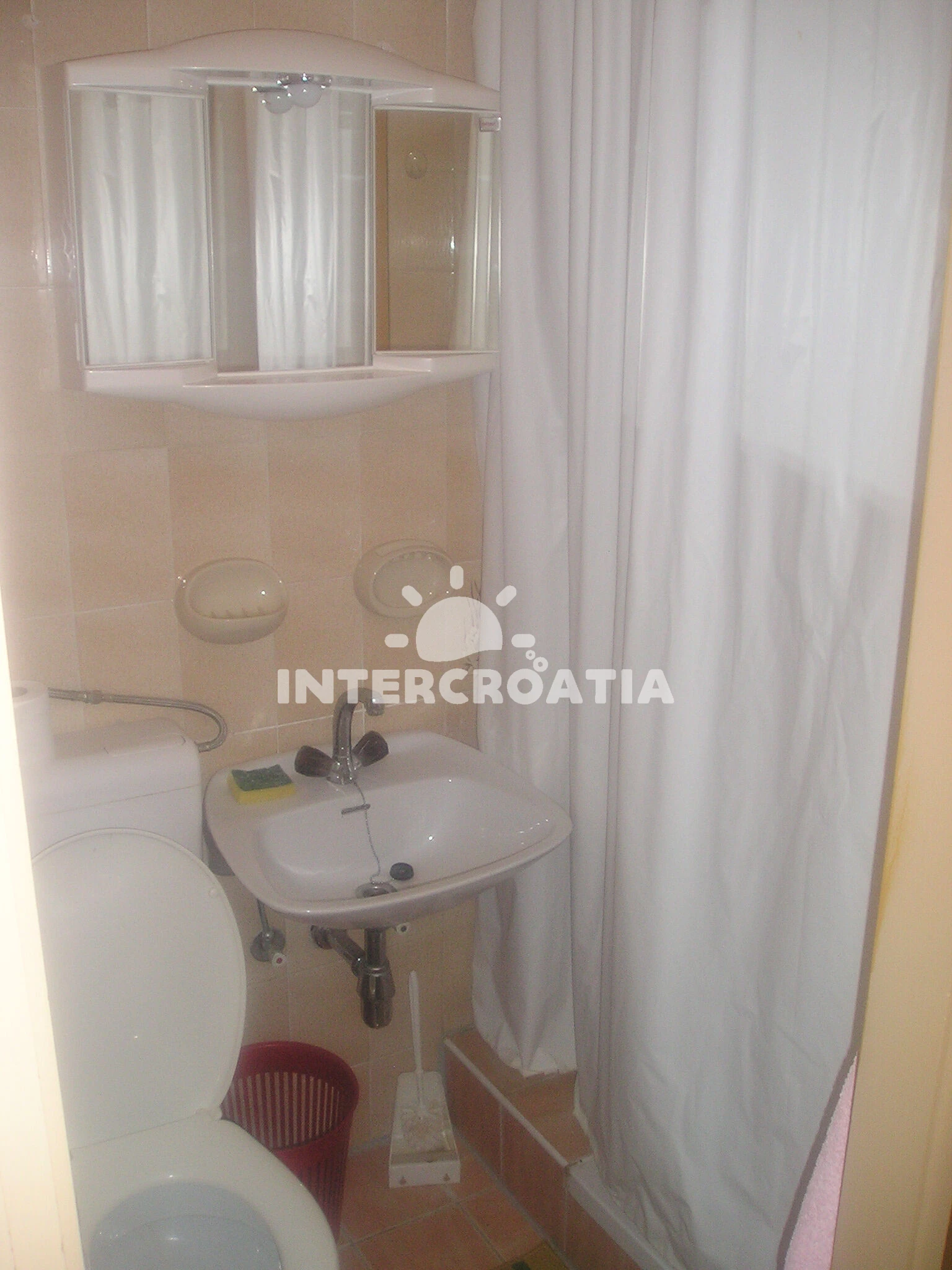 Apartmán (50 m2) s terasou, balkonem a venkovním posezením se nachází v 1. patře domu. Apartmán má 1 ložnici, 2 koupelny a je vhodný pro až 4 osoby. Kuchyňská linka je vybavena dvouplotýnkovým vařičem, rychlovarnou konvicí, kávovarem, nádobím a lednicí s mrazákem. Obývací pokoj s jídelním stolem, pohovkou (rozložitelná na extra lůžko pro 2 osoby), televizí se satelitním programem, klimatizací a vstupem na balkon. Ložnice s dvoulůžkem. Dvě koupelny se sprchovým koutem, umyvadlem a wc. Hostům je k dispozici parkování u objektu zdarma.
